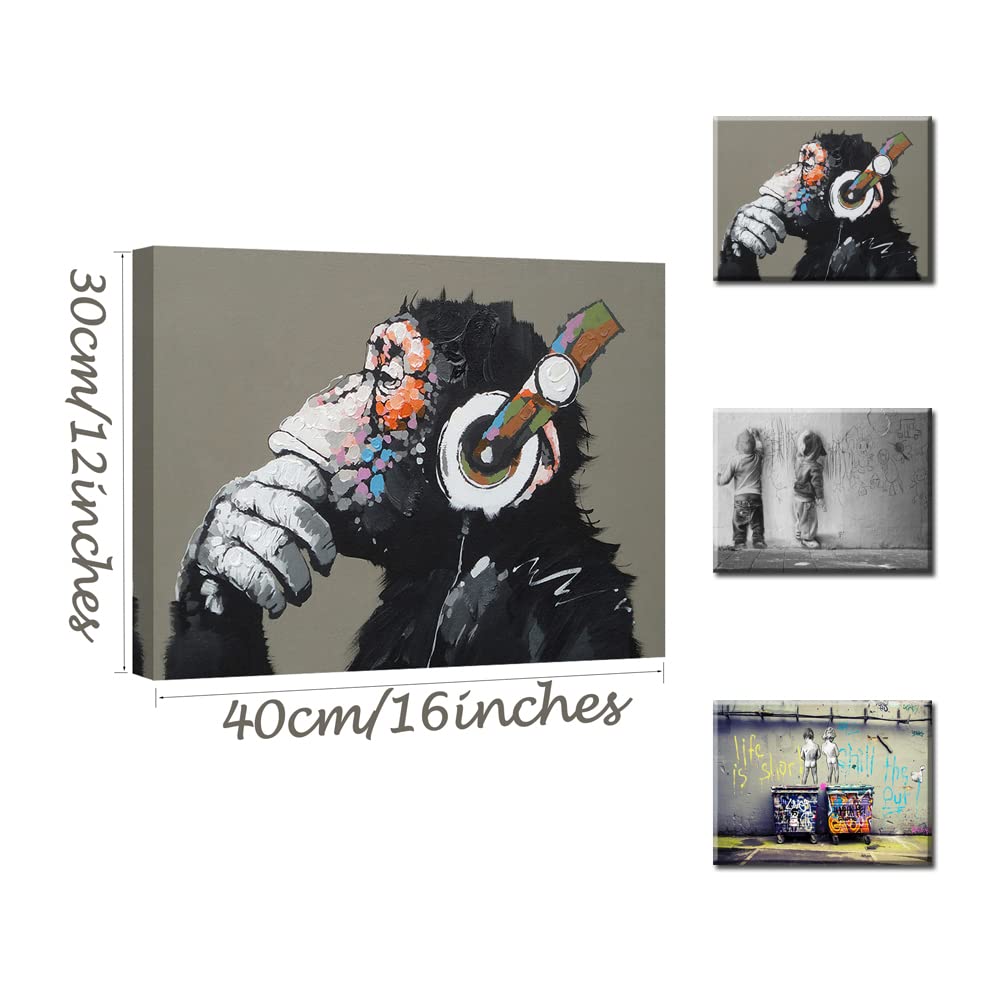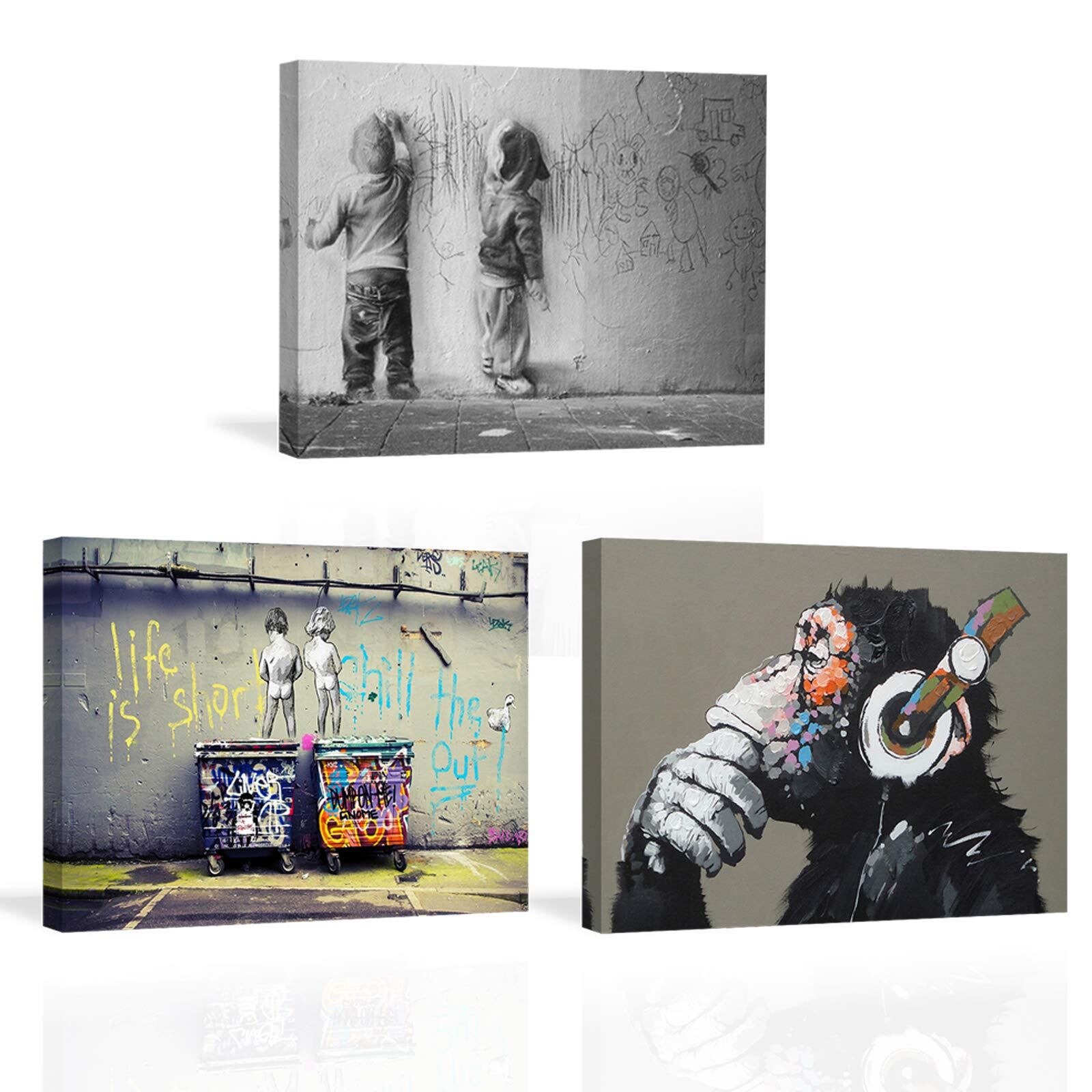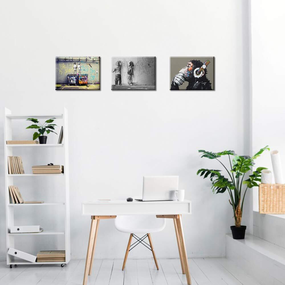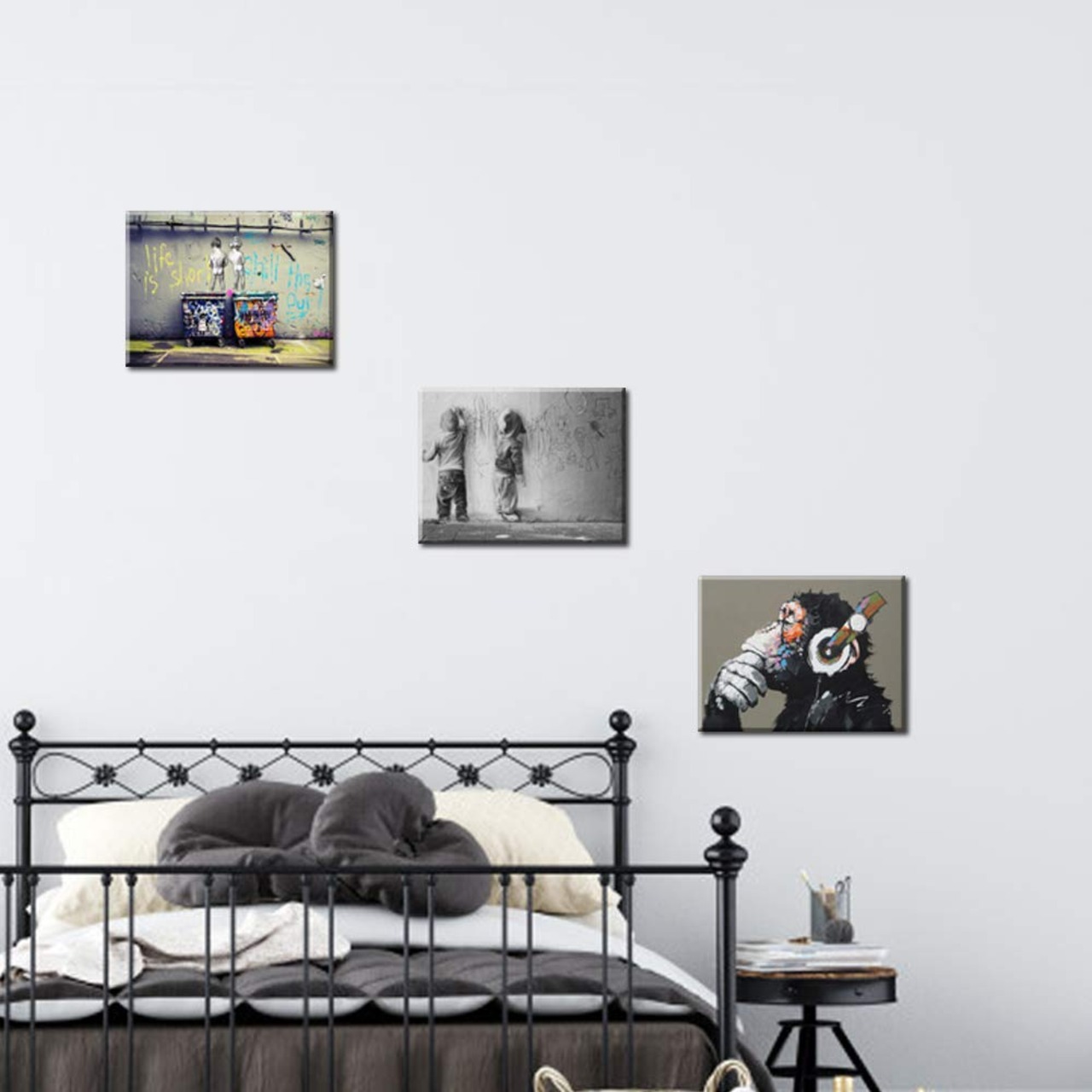 PIY PAINTINGアートポスター 『Banksy落書きキャンバス絵画セット』 軽くて取り付けやすい木枠付きの完成品 バンクシーの絵 現代のフレーム装飾画 壁掛け リビング、玄関、寝室、事務所に飾る壁画アート(木枠付き、30x40cm、3枚パネルセット)