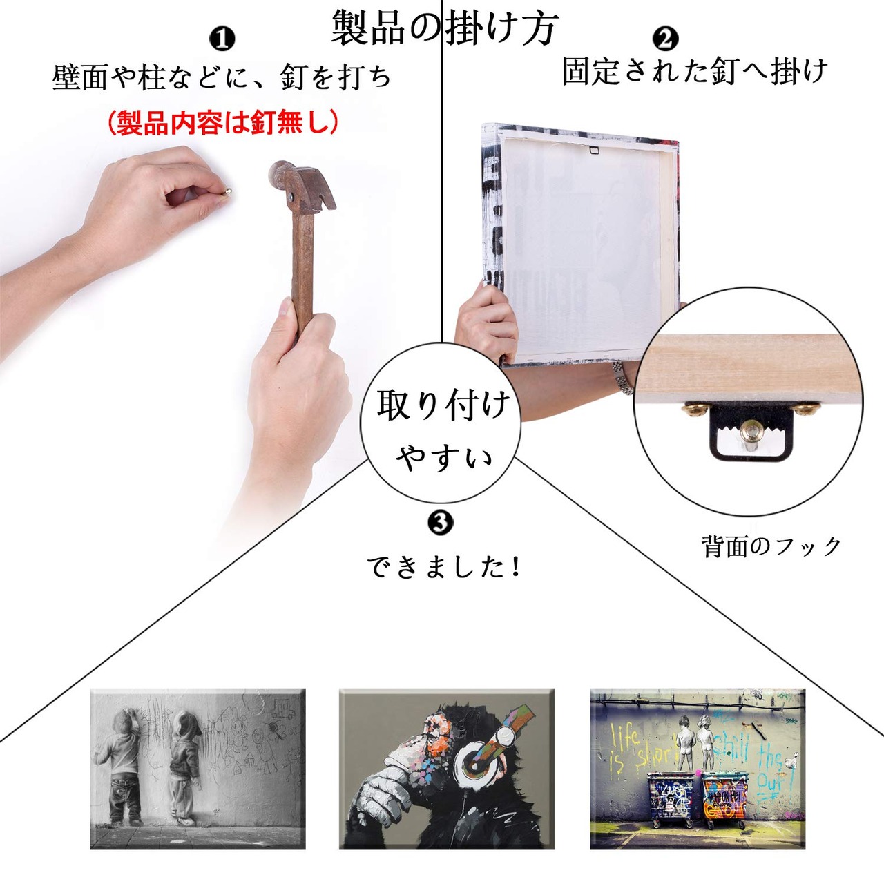 【セール】PIY PAINTINGアートポスター 『Banksy落書きキャンバス絵画セット』 軽くて取り付けやすい木枠付きの完成品 バンクシーの絵 現代のフレーム装飾画 壁掛け リビング、玄関、寝室、事務所に飾る壁画アート(木枠付き、30x40cm、3枚パネルセット) | GIGATERA
