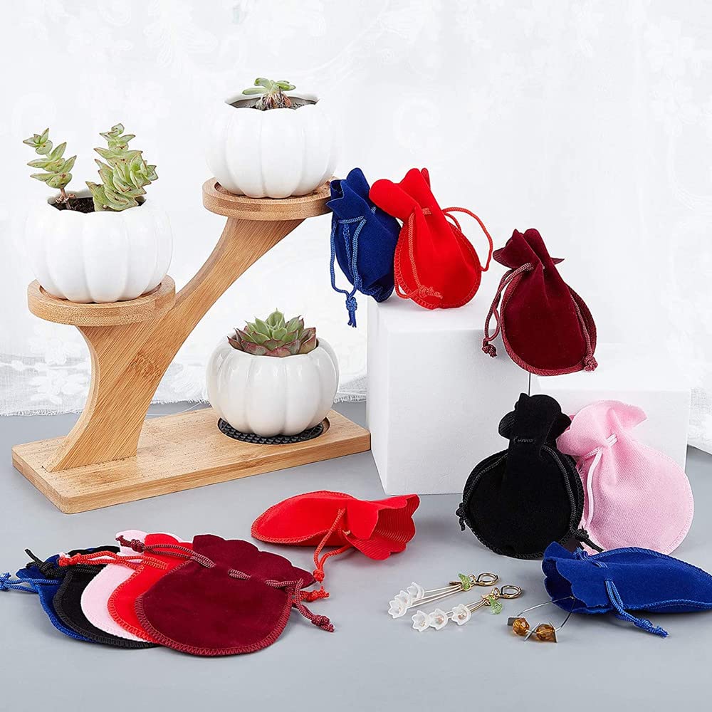 LIKENNY 巾着袋 ベロア調 12枚入り 6色 ジュエリーポーチ アクセサリー保存 多機能 ギフトバッグ 小物入れ ラッピング プレゼント用収納袋