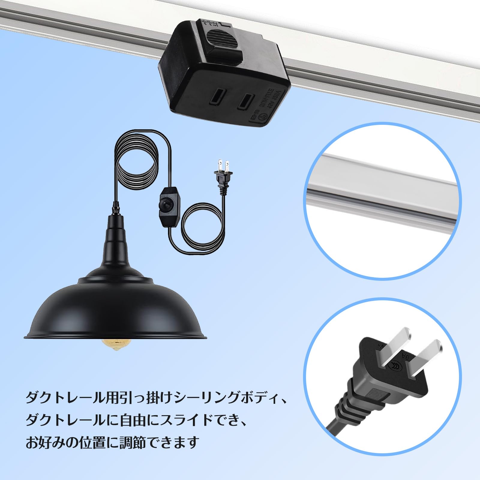 ダクトレール用引っ掛けシーリングボディ、ダクトレールに自由にスライドでき、お好みの位置に調節できます。