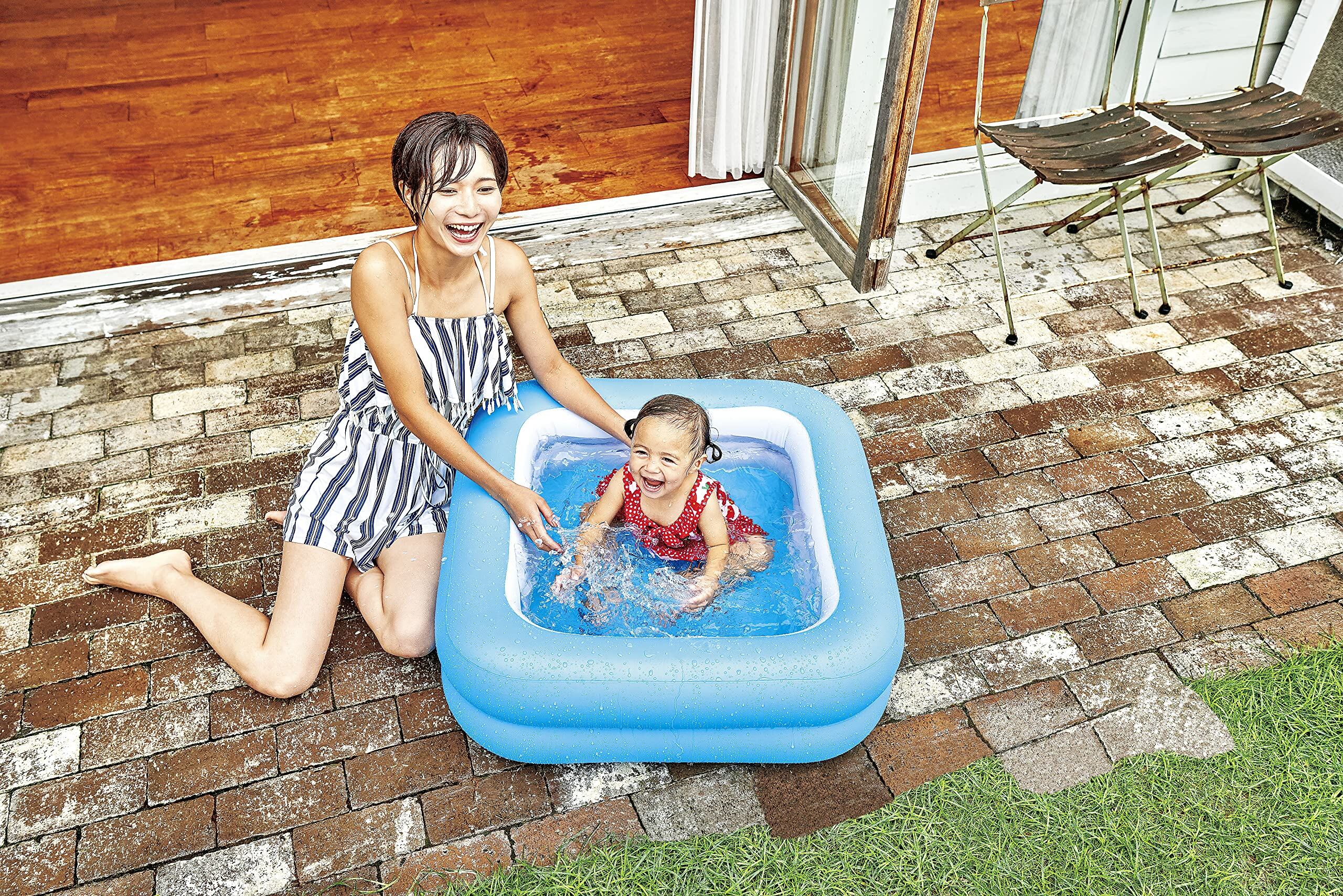 膨らんだ状態のプールの大きさは長さ約82cm、横幅約82cm、高さ27cmです。