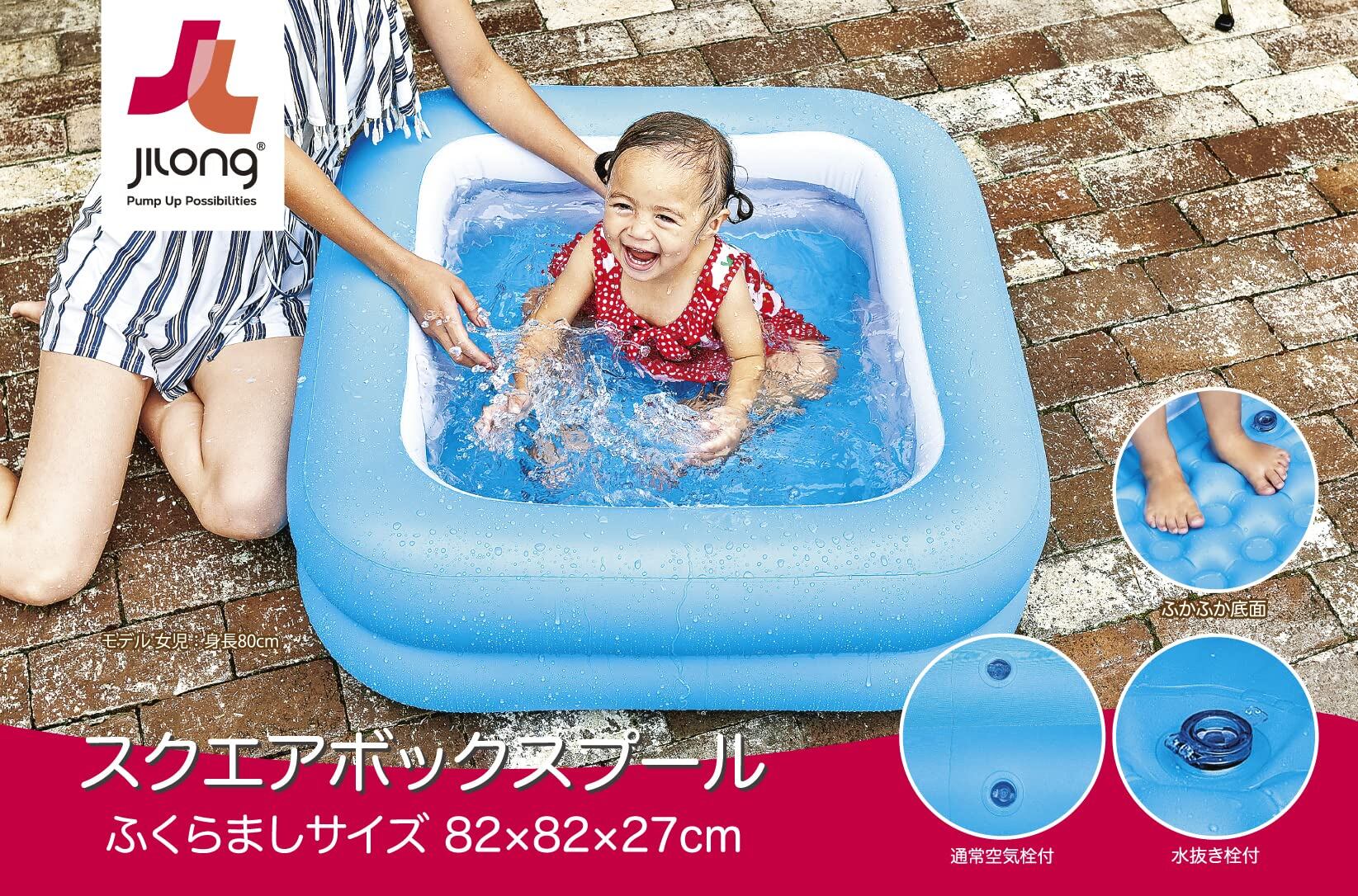 JILONG(ジーロン) スクエアボックスプール 82×82×27cm(膨らましサイズ) 底面エアークッション JL-688079 BL 小型