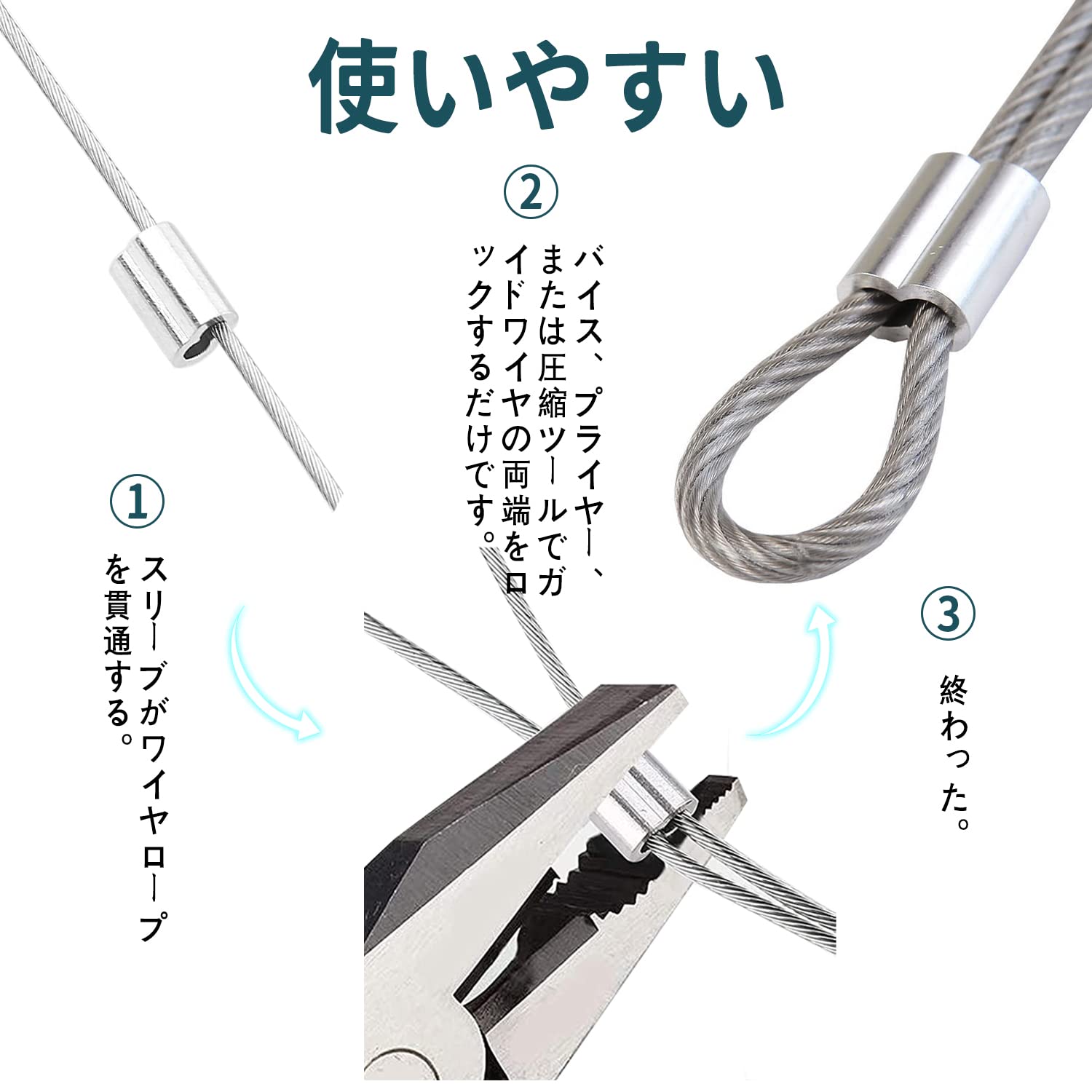 使いやすい:アルミ圧着なので、使用するのが簡単です。バイス、プライヤー、または圧縮ツールでガイドワイヤの両端をロックするだけです。