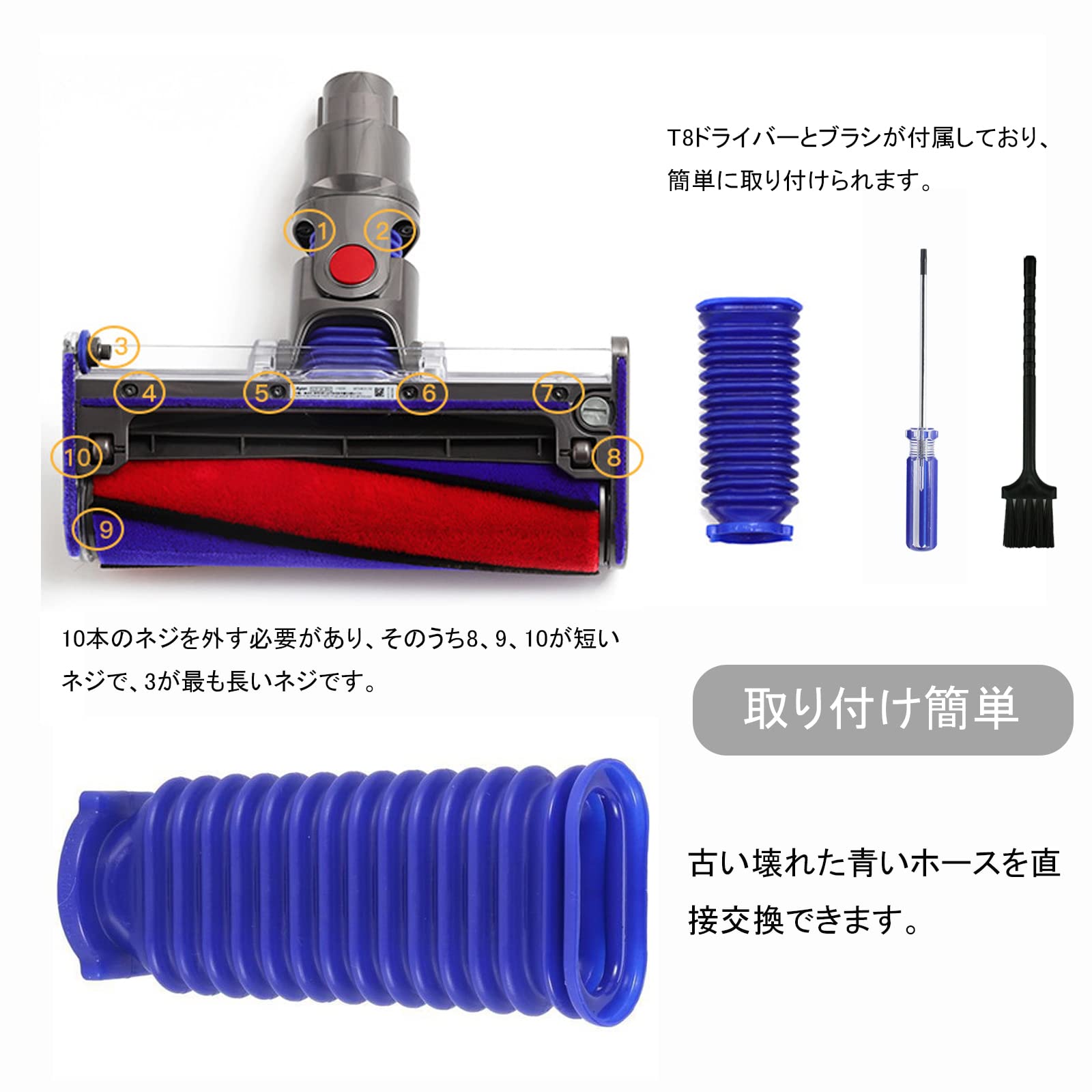 EUSTACE ダイソン掃除機 青いホース蛇腹 の交換部品 Dyson V6 V7 V8 V10 V11家庭用掃除機 ソフトローラークリーナーサクションホース 修理 交換部品 分解 組立 掃除機 お手入れ ドライバー & ブラシ付き