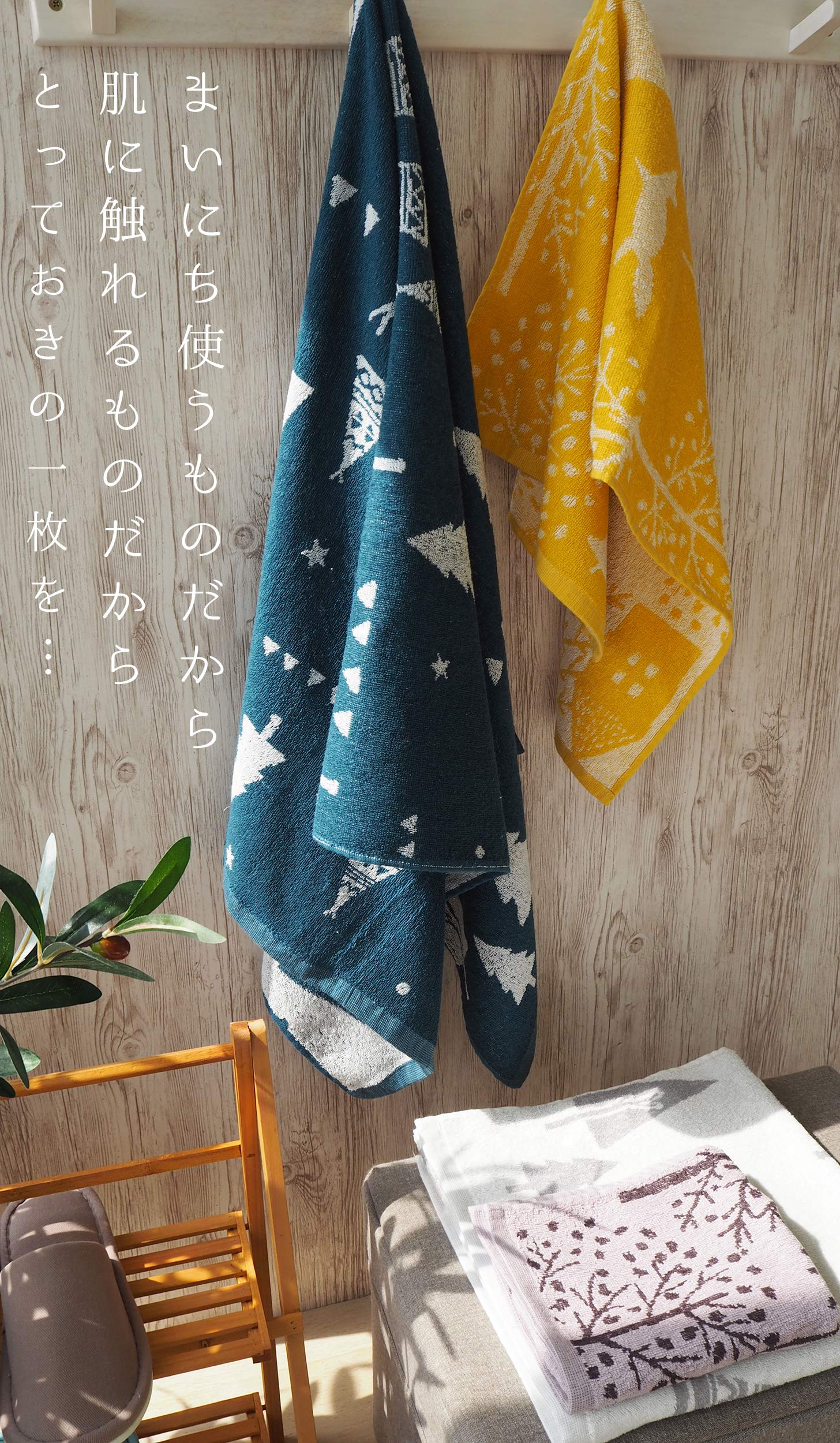 Kosugizen バスタオル 北欧調ジャガード ツリー 2色各1枚入 60×120㎝ 北欧風モチーフ 薄手タイプ 2枚セット SV-6514-2