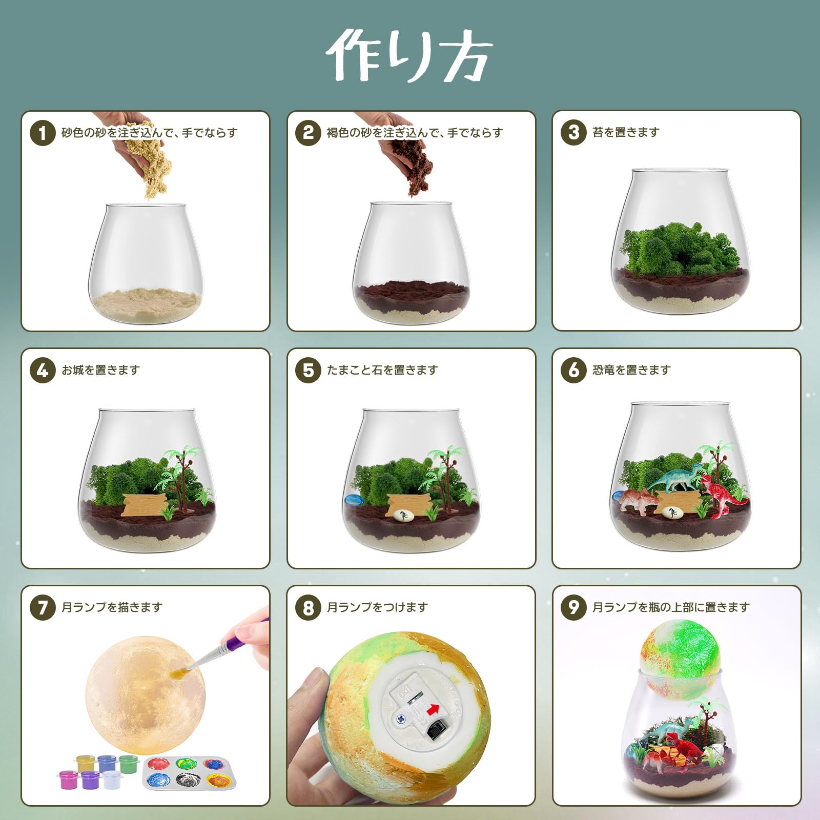 恐竜テラリウムキット 描ける月ランプ 工作キット 小学生 自由研究 手作りキット ミニチュア お絵描きキット メイキングトイ 男の子 女の子 誕生日 クリスマス プレゼント 子供 ダイナソー おもちゃ