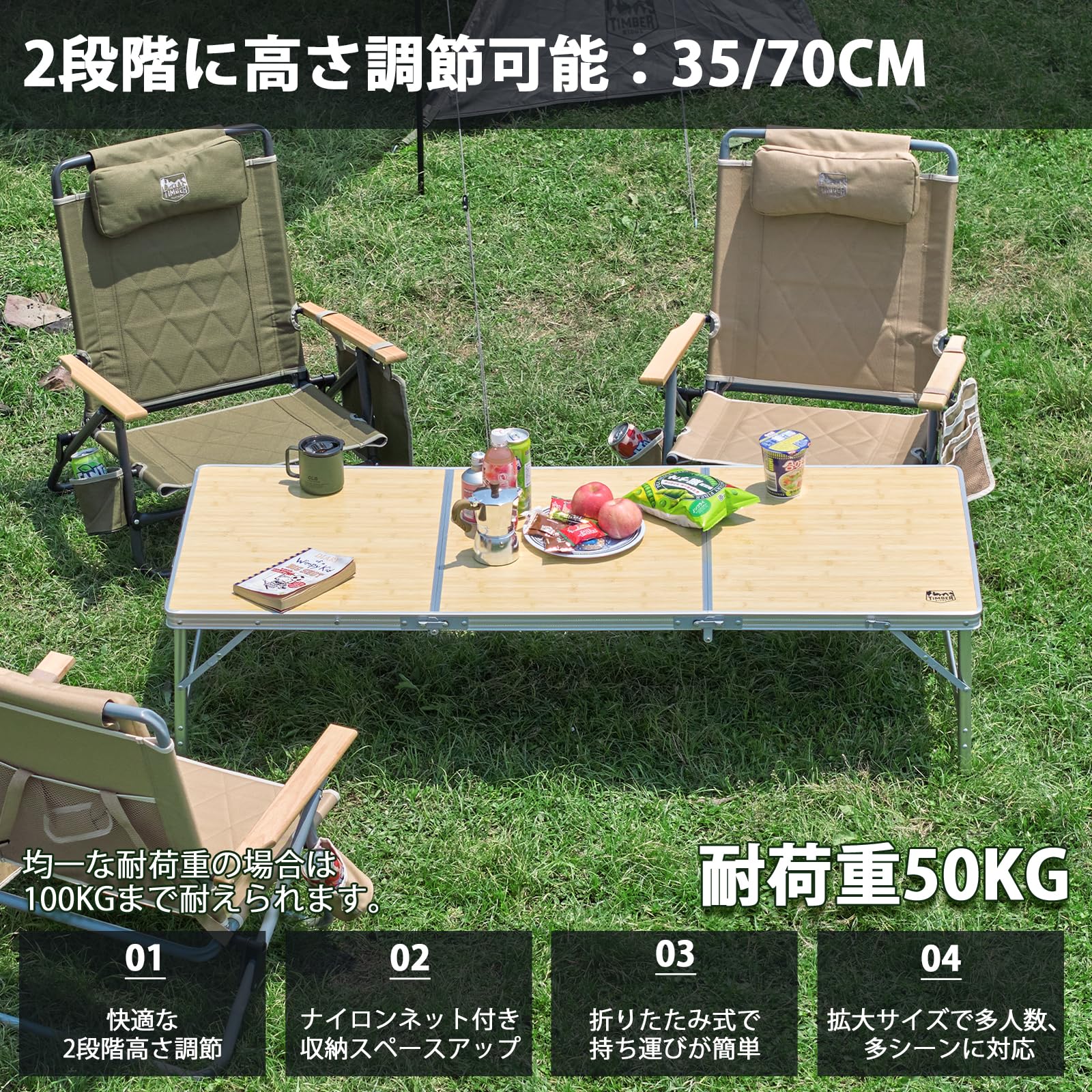 TIMBER RIDGE アウトドア 折りたたみ テーブル 高さ2段階調整可能 アウトドア レジャー キャンプ ロースタイル