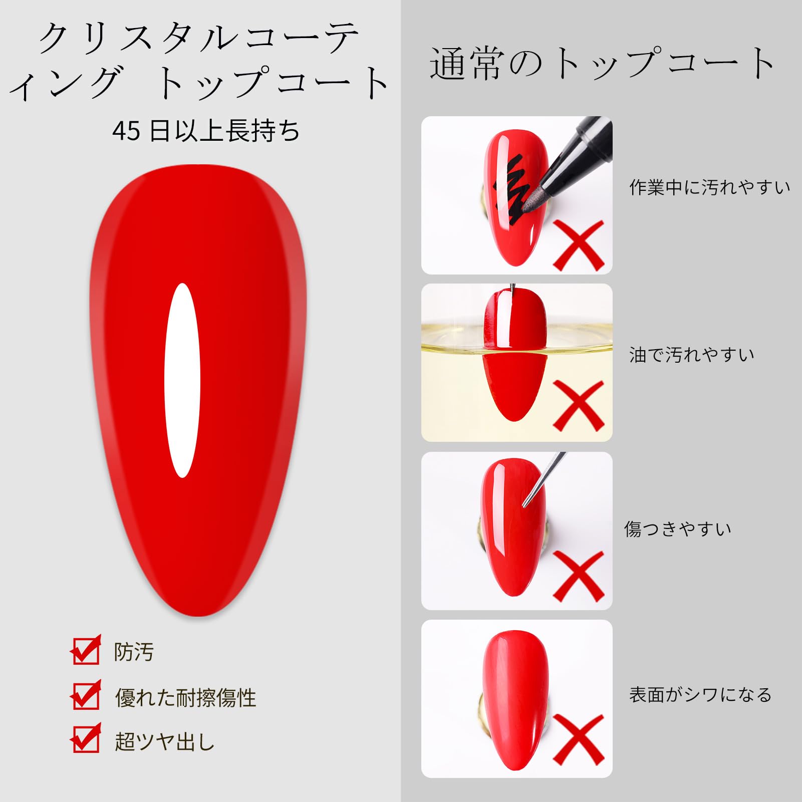 28日間長持ち: ジェルネイルポリッシュベースとトップコートは、耐摩耗性があるため、適切に塗布すればジェルを28日間以上持続させることができます。柔軟性のあるUVジェルトップコートは、爪に光沢のある輝きを与え、傷や欠け、汚れを防ぎます。