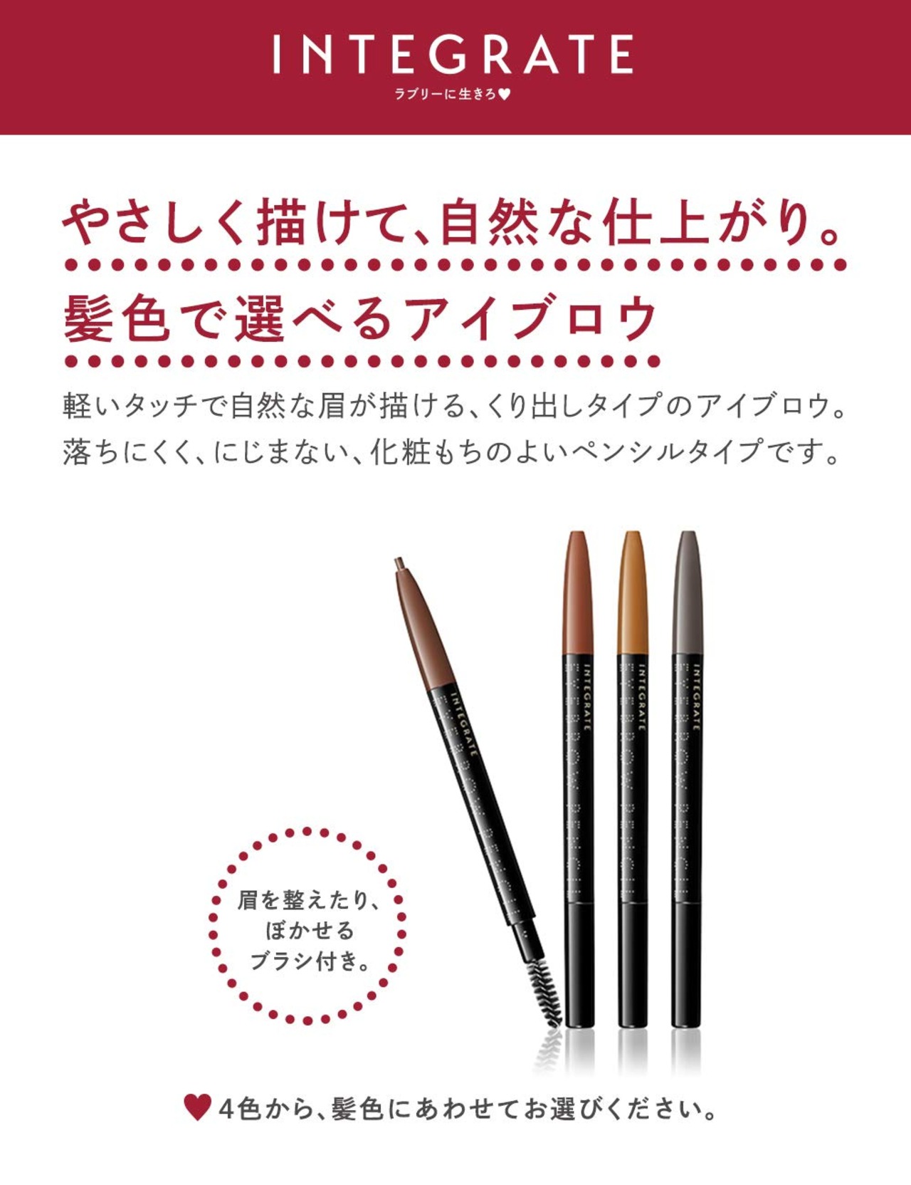 落ちにくく、にじまない、化粧もちのよいペンシルタイプです。眉を整えたり、ぼかせるブラシ付き