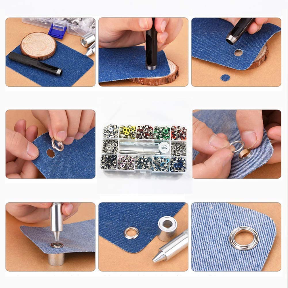【使いやすいハトメセット】:ハトメをつけるのに必要なツールはそろっており、初心者からプロまでハンドメイドが好きな方にオススメする手芸、修理用両面ハトメセットです 。穴あけ工具で、ハトメ本体(筒部分)が通る穴をあける。 あけた穴にハトメ本体(筒部分)を通す。座金があれば取付け対象(革や布)をハトメ本体と座金で挟み込むようセットする。ハトメ本体を潰す。