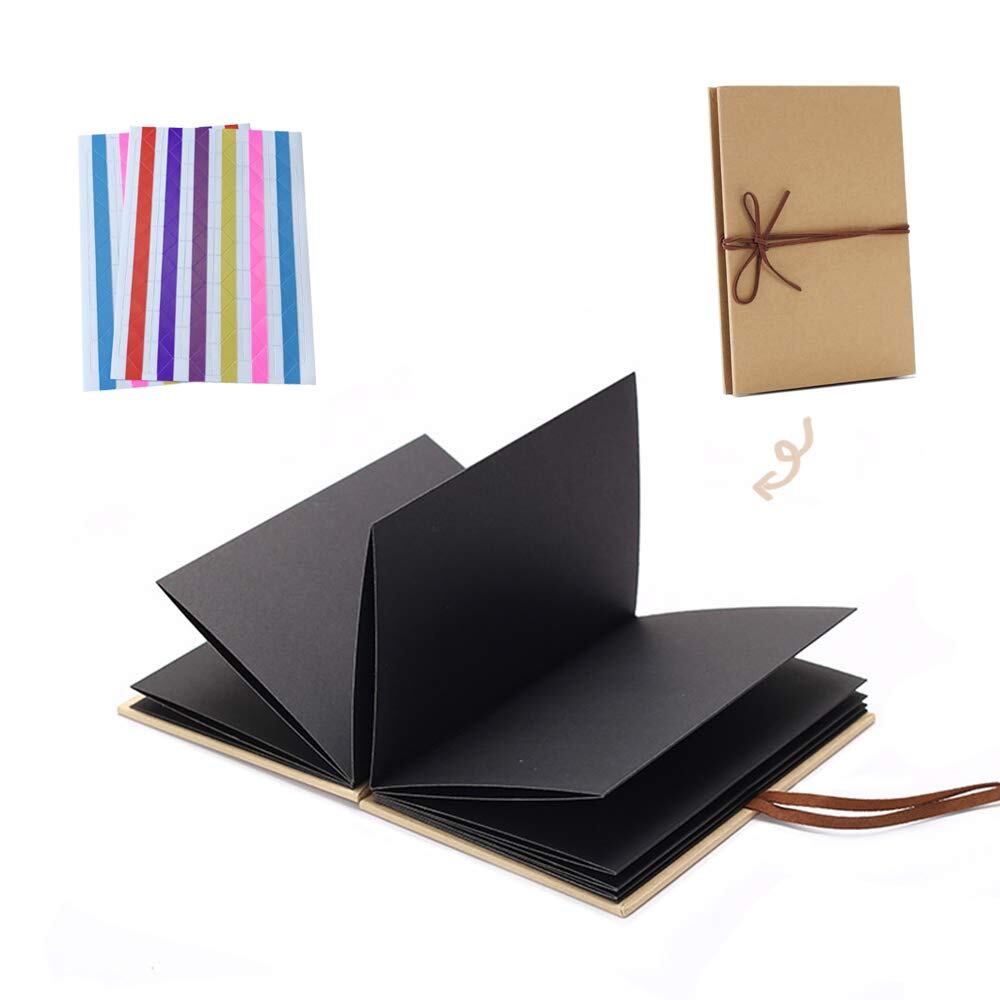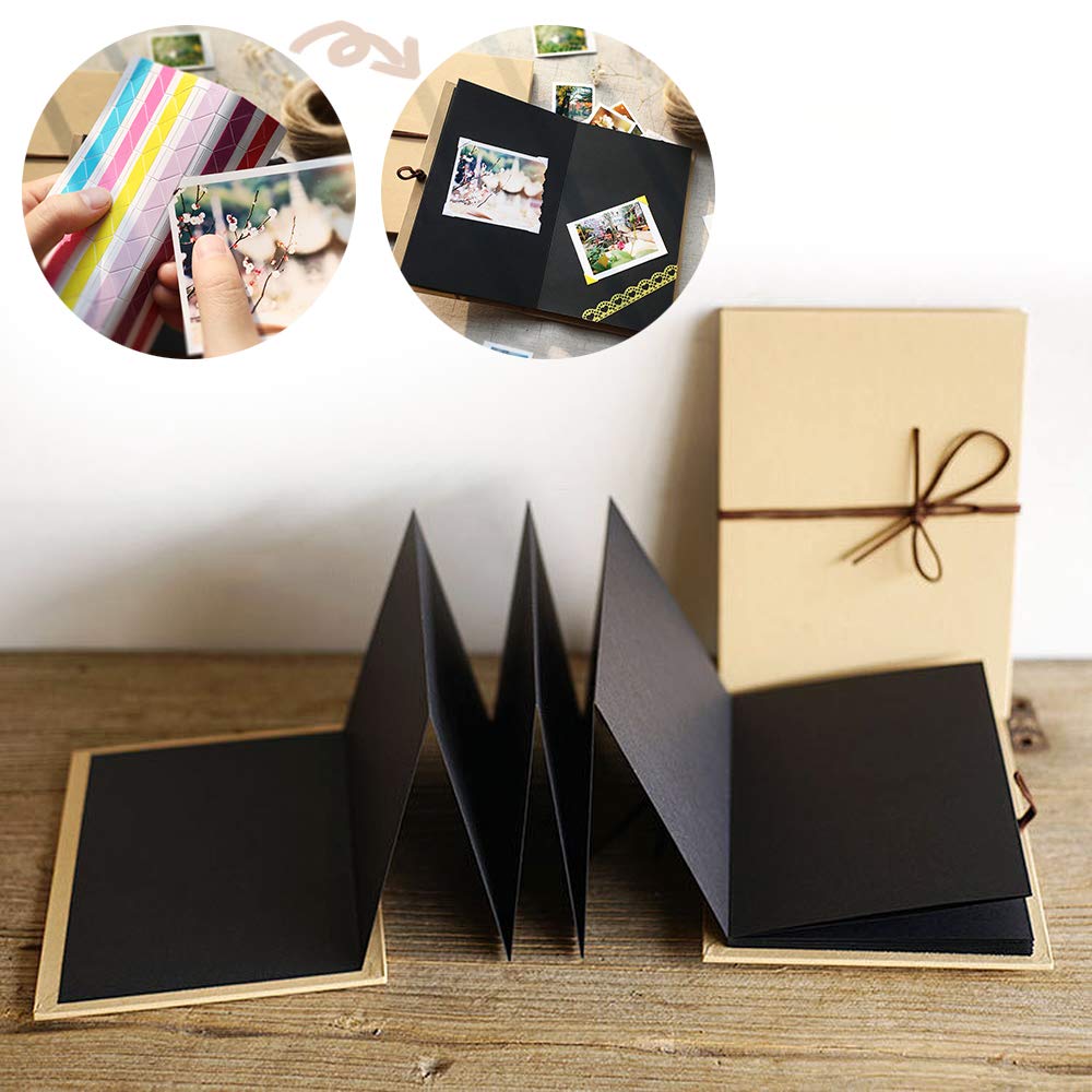 手作りアルバム DIY 折りたたみ式 アコーディオンタイプ スクラップブック フォトアルバム 写真集 クラフト台紙製 記念日/結婚/卒業/誕生日/お祝い プレゼント 贈り物 (ブラック)