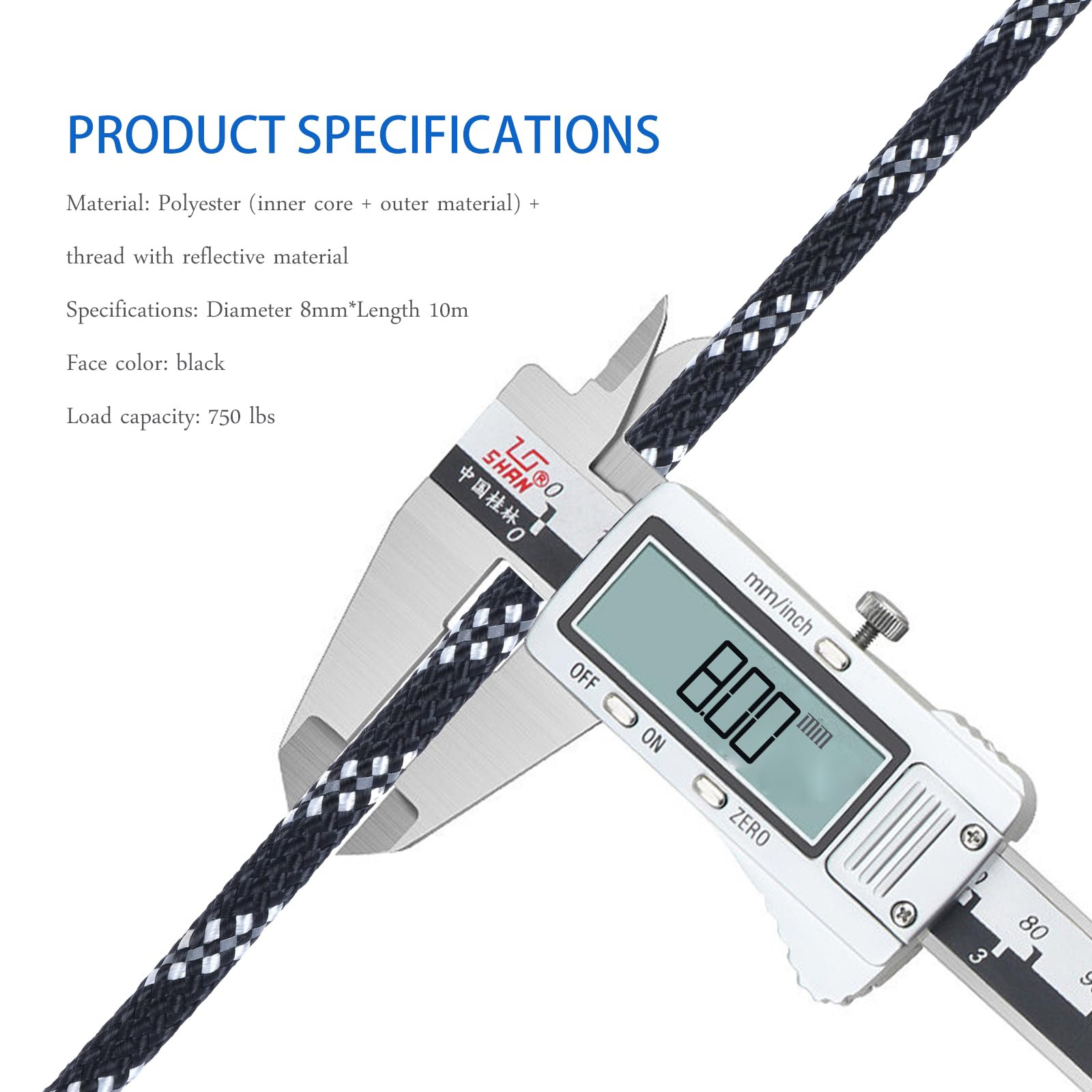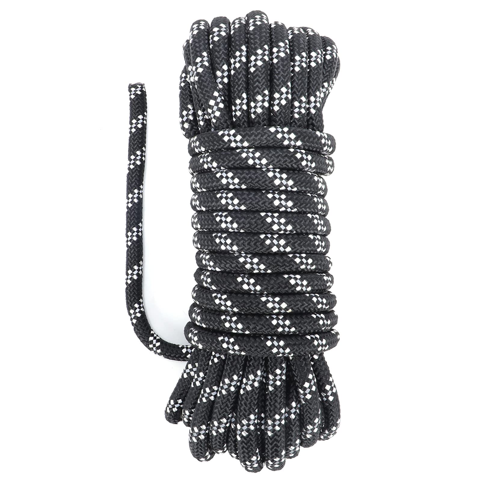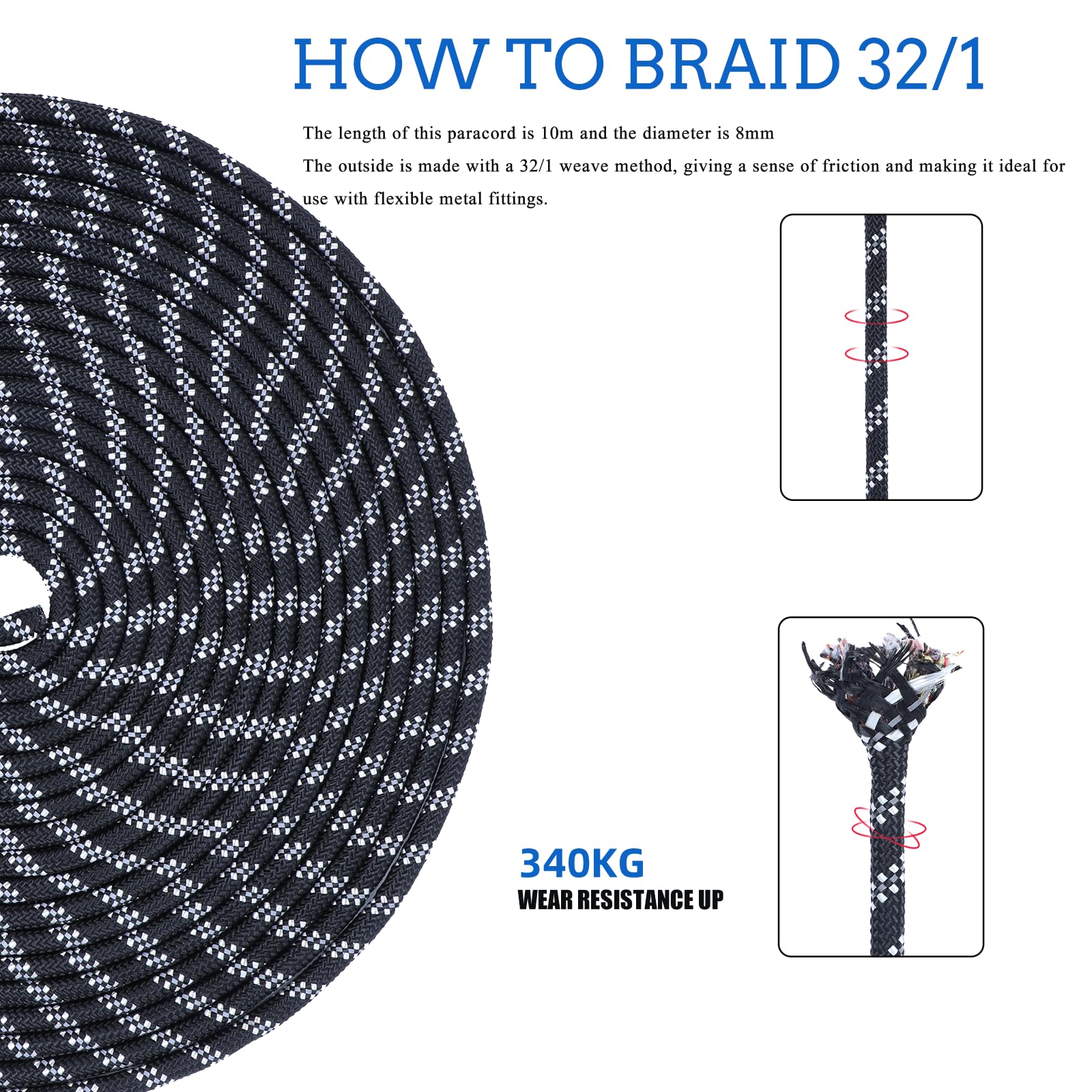 パラコード8mm ガイロープ10m 6芯 反射材入り ナイロンコード 耐荷重340KG き キャンプ タープ アウトドア アクセサリー用 ブラック