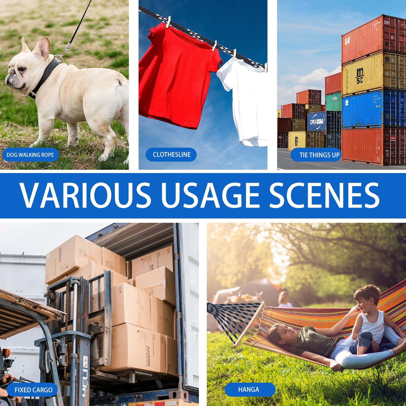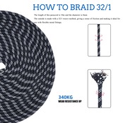 【優れた引張り強度】アウター材には、紫外線や水分に強いポリエステルを使用します。18本ナイロン芯で編み込みで非常に頑丈であり、継ぎ目のないノーカット製造で350㎏の高耐荷重