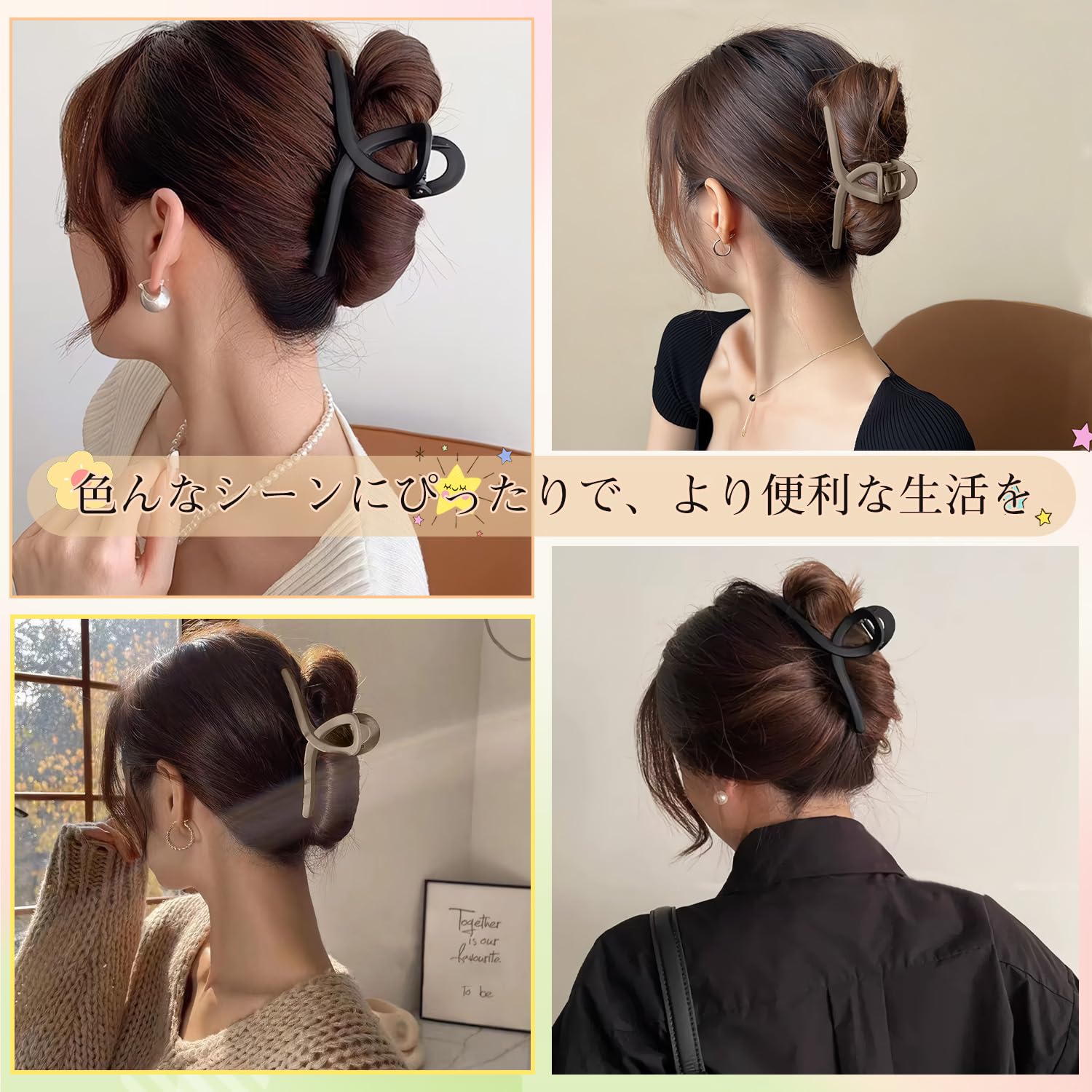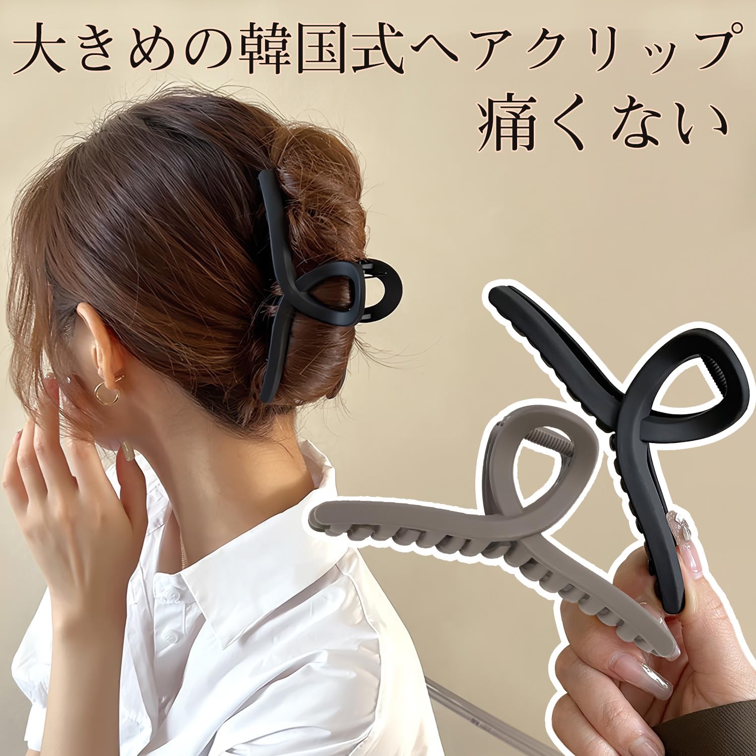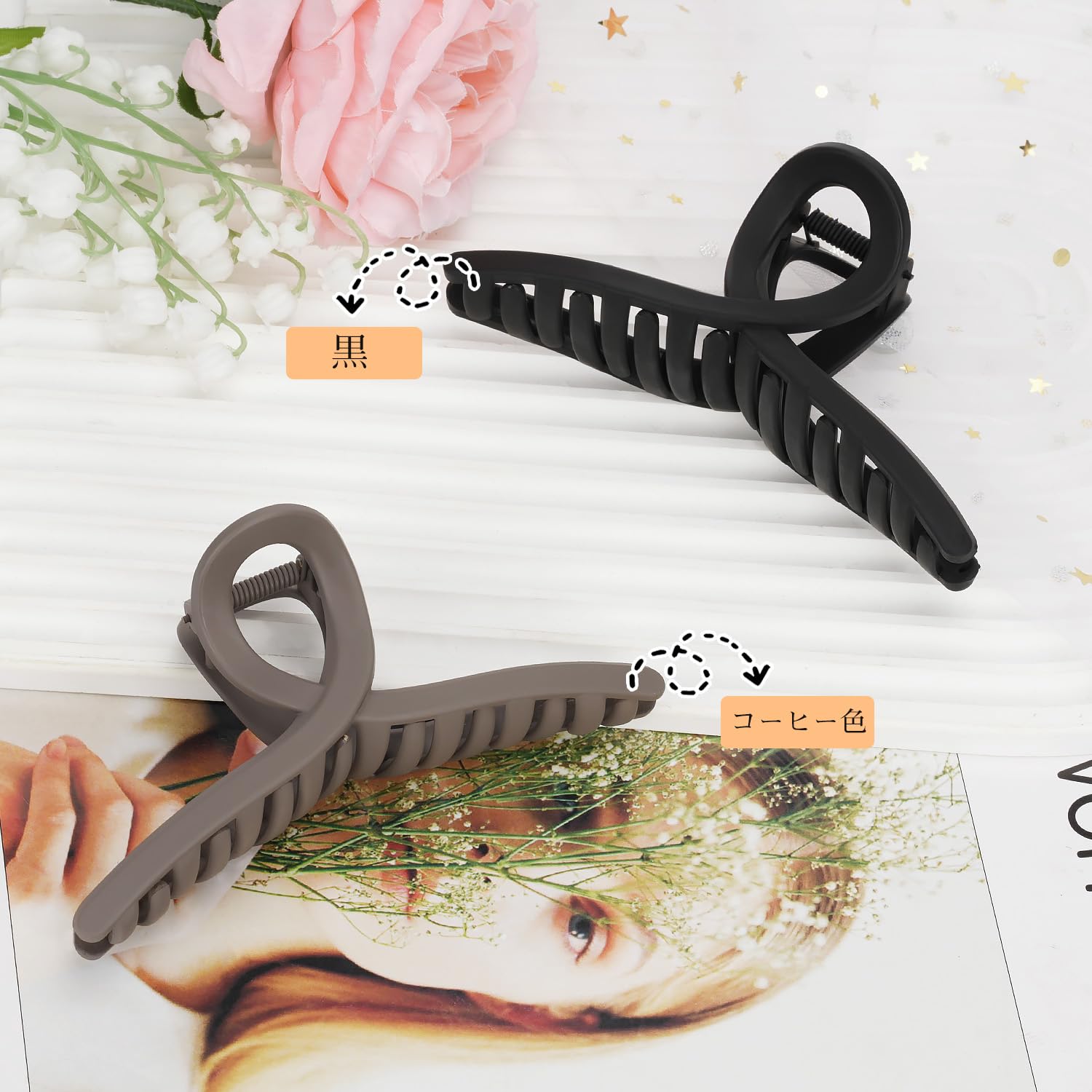 【大きめのヘアクリップ】13 cmの大きめサイズと大容量により毛量の多い状況に簡単に対応でき、多毛でもそうなくてもしっかりとまるかわいい韓国式ヘアクリップです