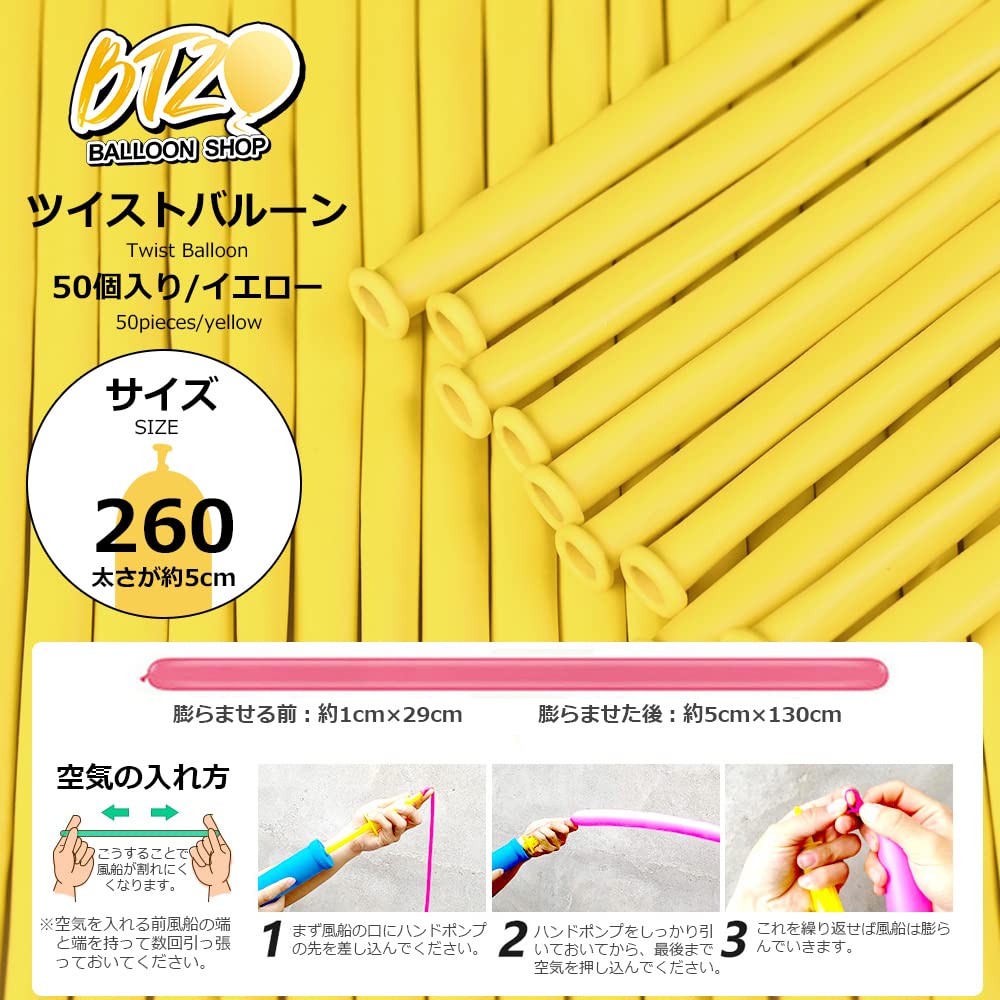 BTZO バルーンアート 風船 50本セット マジック ツイストバルーン ひねる 細長い風船 バルーン花束 飾り付け 誕生日会 イベント パーティー 結婚式 パーティー アソート イエロー