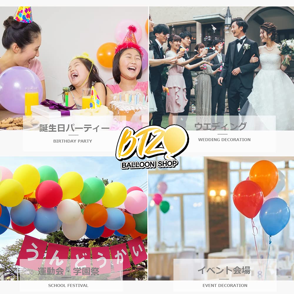 ■BTZOバルーンの色彩・サイズ・シェイプバリエーションが豊富で、誕生日会だけでなく、結婚式や歓送迎会、 卒園式、入園式、運動会、ハロウィン、クリスマス、展示会、リリース(放天)やお祭りなどのアトラクショ ンや販促用としてもよく使われています。