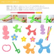 ■細長い風船をひねって動物や植物、キャラクターなどいろんな物を作ることが出来ます。お家で親子で一緒に楽しく作ったり、本格的に作り込んでプレゼントや飾り付けをしたり、みんなが喜ぶバルーンアートをいっぱい作りましょう。