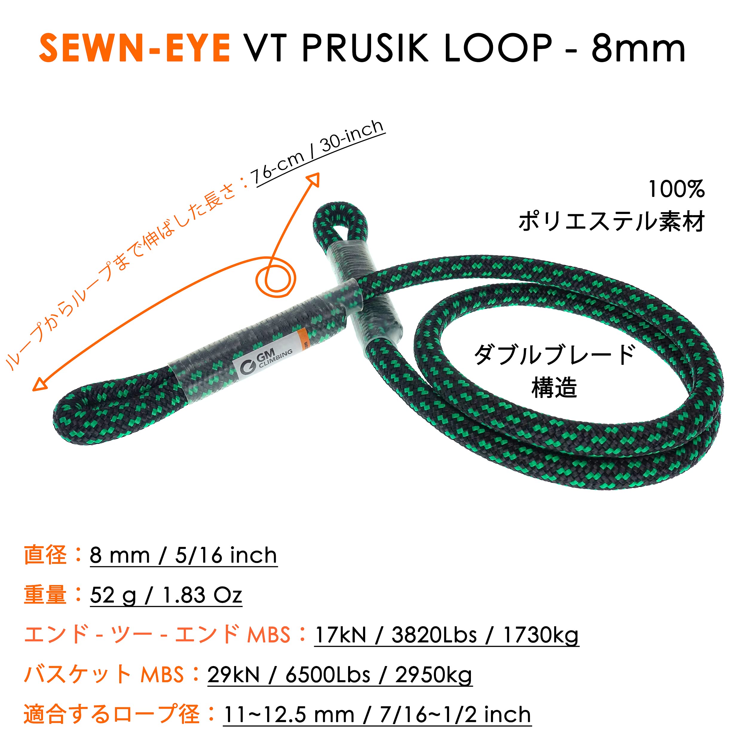 GM CLIMBING 8mm 76cm ダブルブレード アイツーアイ プルージックコード グリーン