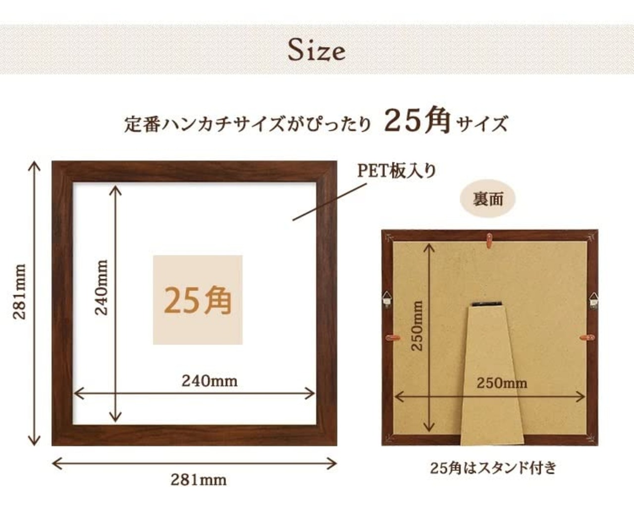 VANJOH ハンカチ額 25角 ブラウン 106043 HAN25-BR
