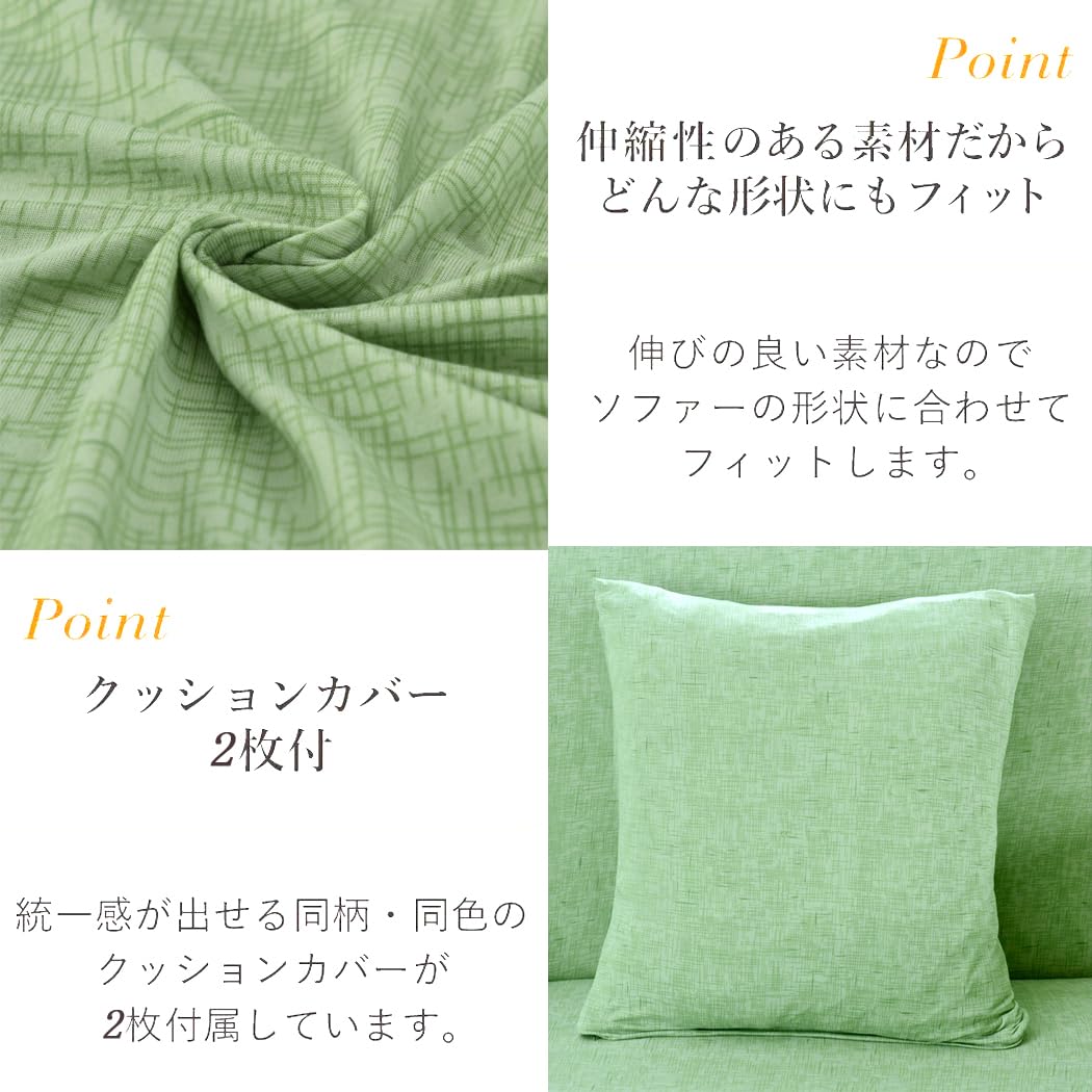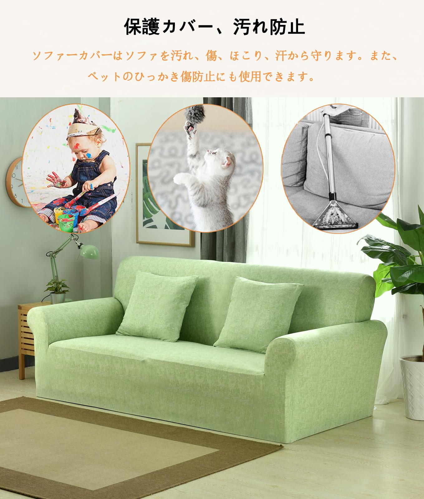 【数量限】ソファーカバー 2 3 4人掛け ストレッチ 北欧風 ソファーカバー 肘付き 滑り止め 柔らかい 伸縮素材 犬 猫 傷 防止 四季兼用 超便利 2人掛け145〜185cm (グリーン) | GIGATERA