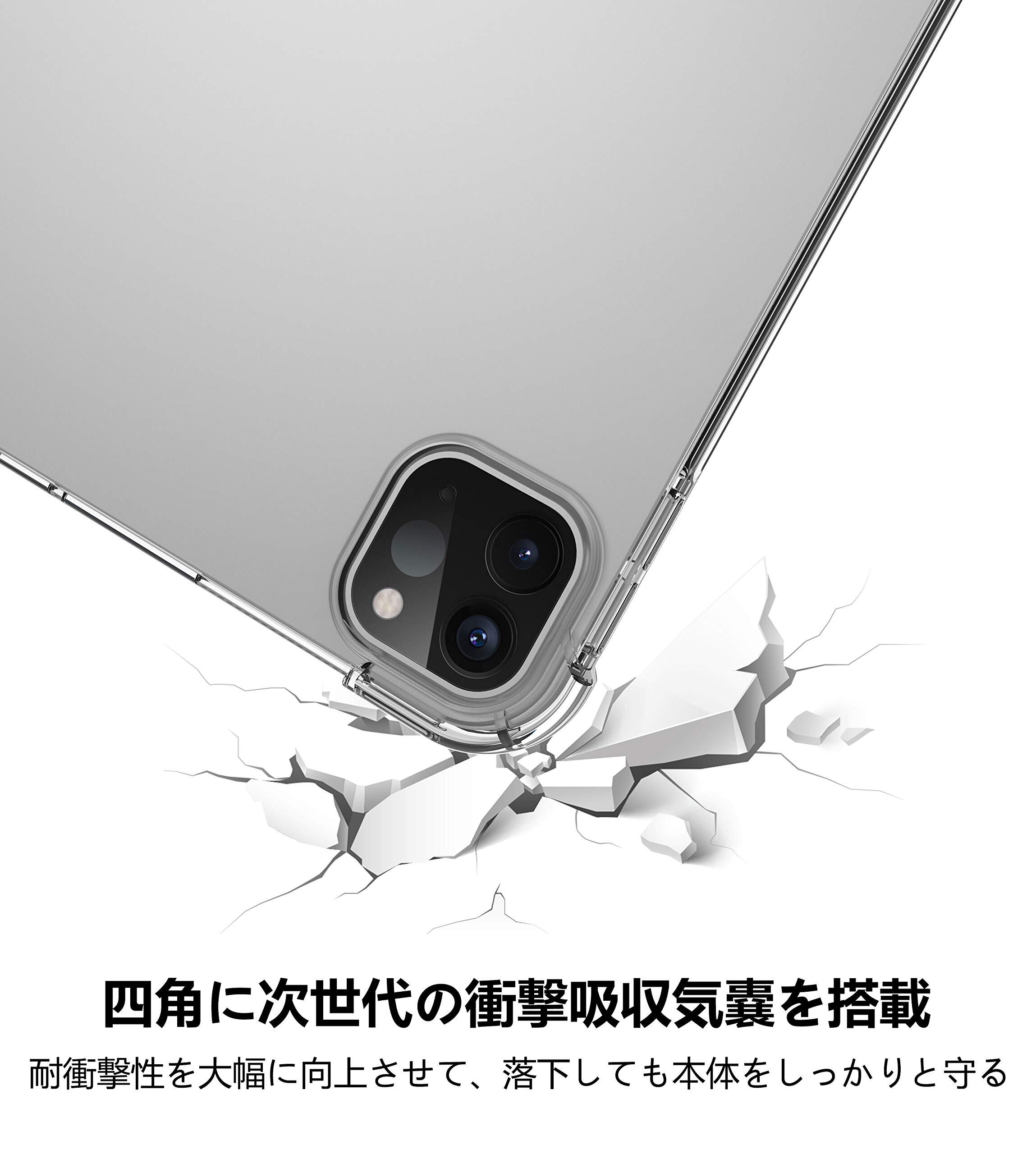 衝撃吸収機能搭載、耐衝撃性を大幅にアップ!透明度の高いシンプルなクリアケースでiPadの美しいデザインはそのまま。 傷や汚れ、衝撃などからiPadをしっかりと保護します。