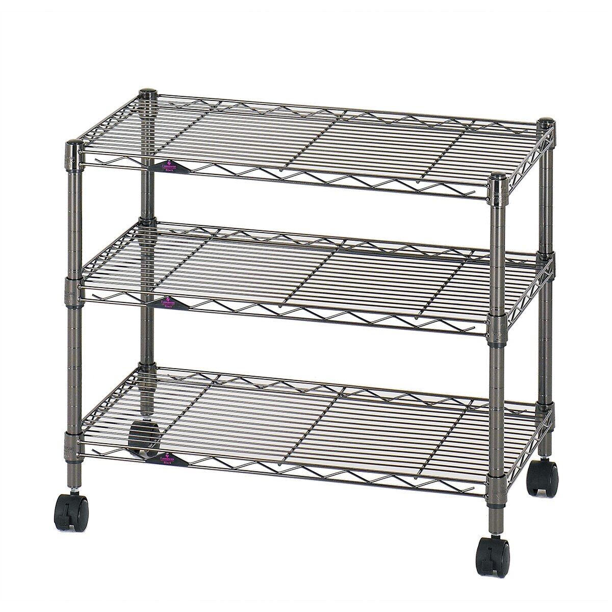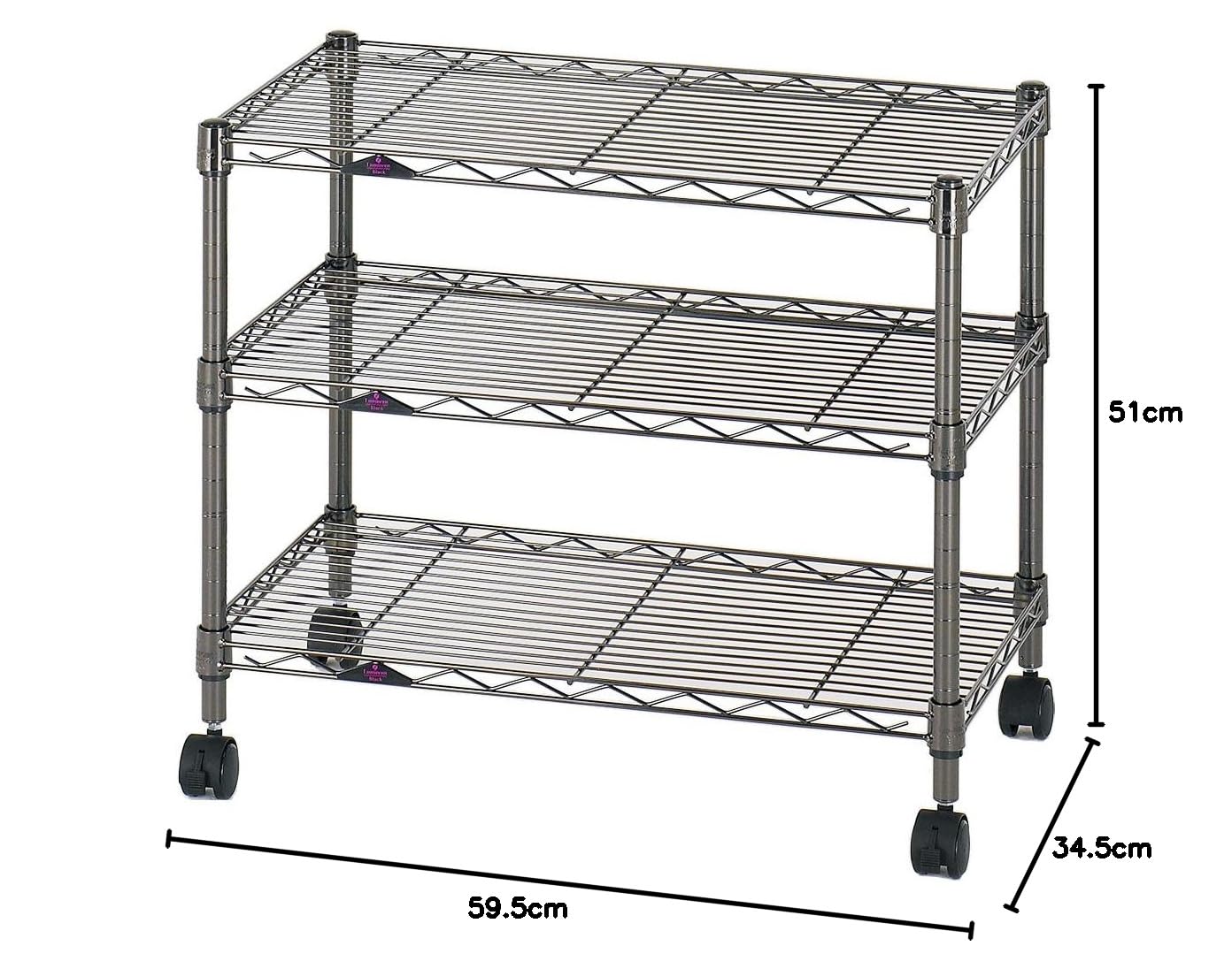 【セール】ドウシシャ ルミナス ブラック 幅60 3段 スチールラック 収納棚 艶のある黒色 幅59.5×奥行34.5×高さ51cm 全体耐荷重240kg(アジャスター使用時) 頑丈 キャスター付き 防錆加工 ポール径19mmパーツ対応 シェルフ TV収納 テレビラック BN5160-3 | GIGATERA