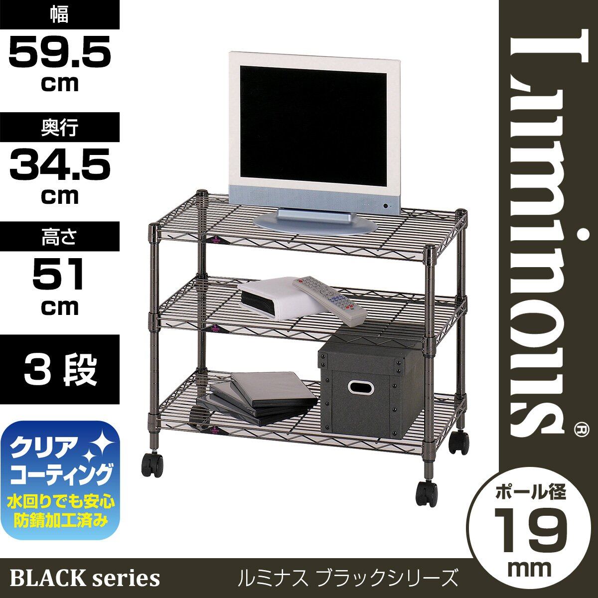 ドウシシャ ルミナス ブラック 幅60 3段 スチールラック 収納棚 艶のある黒色 幅59.5×奥行34.5×高さ51cm 全体耐荷重240kg(アジャスター使用時) 頑丈 キャスター付き 防錆加工 ポール径19mmパーツ対応 シェルフ TV収納 テレビラック BN5160-3