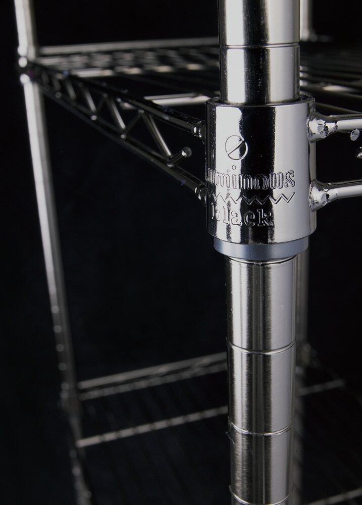 素材:シェルフ(棚)・ポール:スチール(ニッケルメッキ)、スリーブ:ABS樹脂