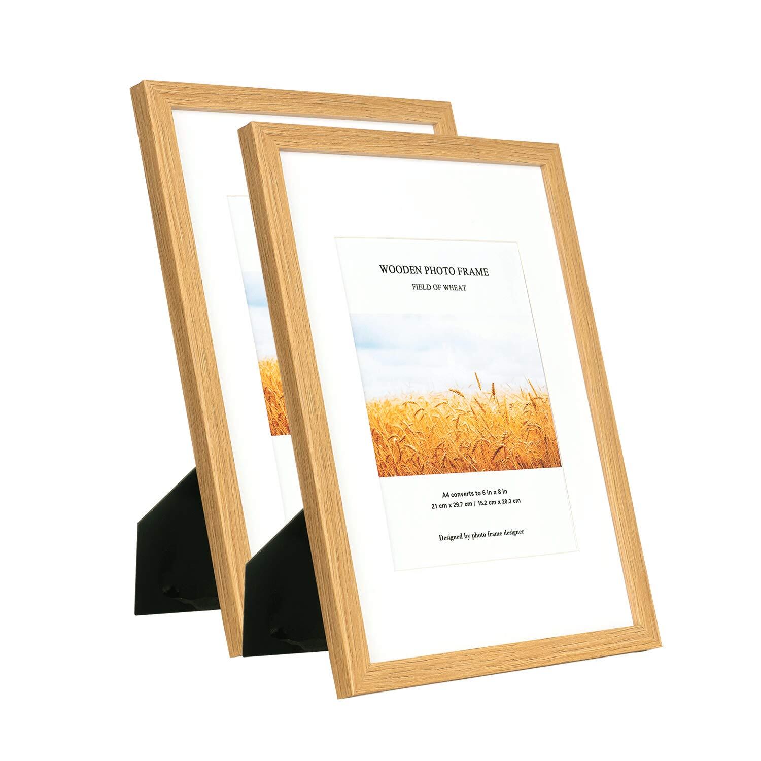 kennethan 額縁 A4 木製 フォトフレーム ガラス 写真フレーム デスクトップまたは壁に置く ナチュラルカラー 2枚セット