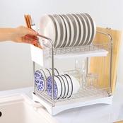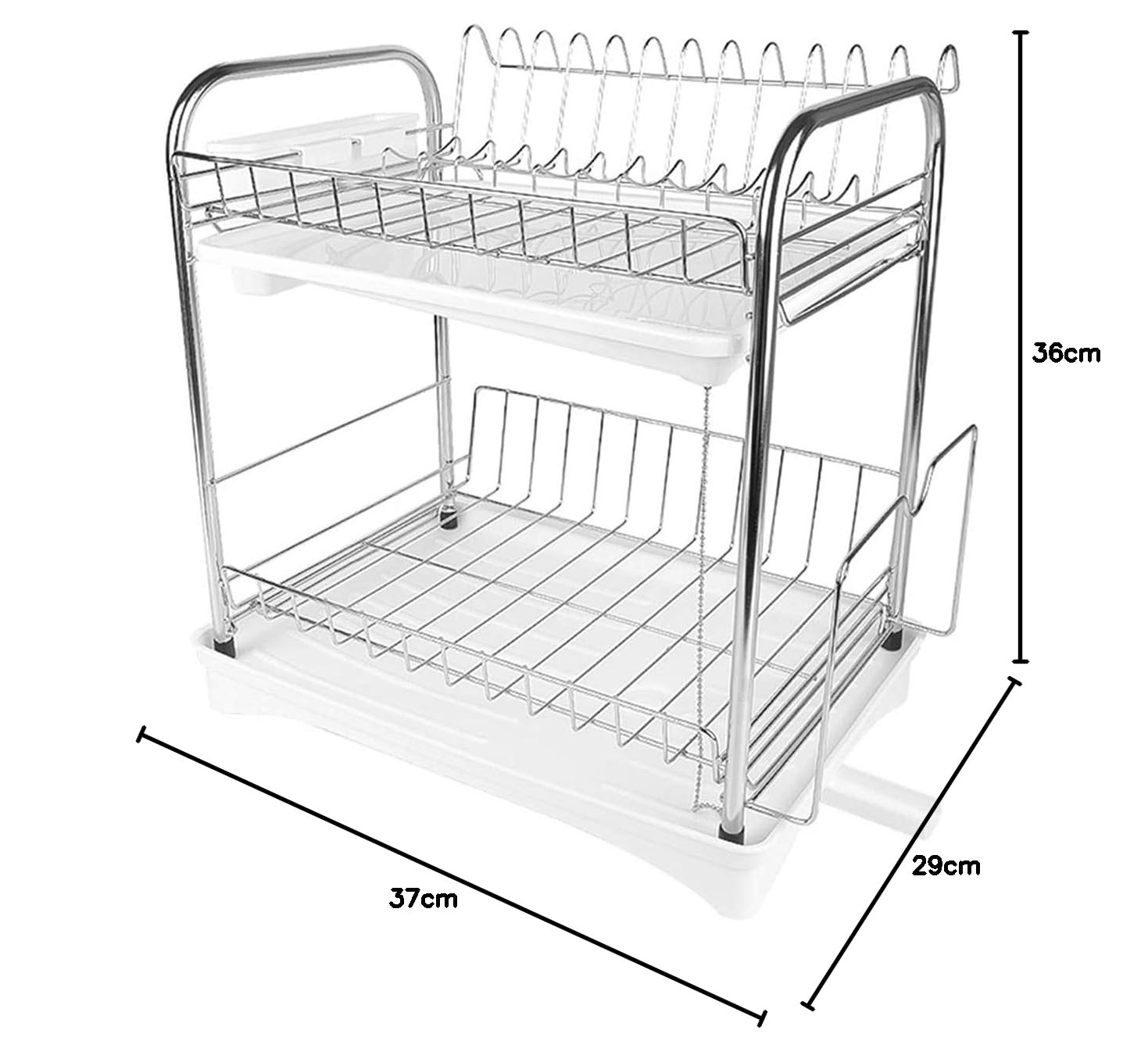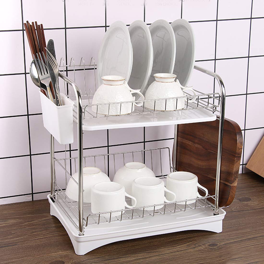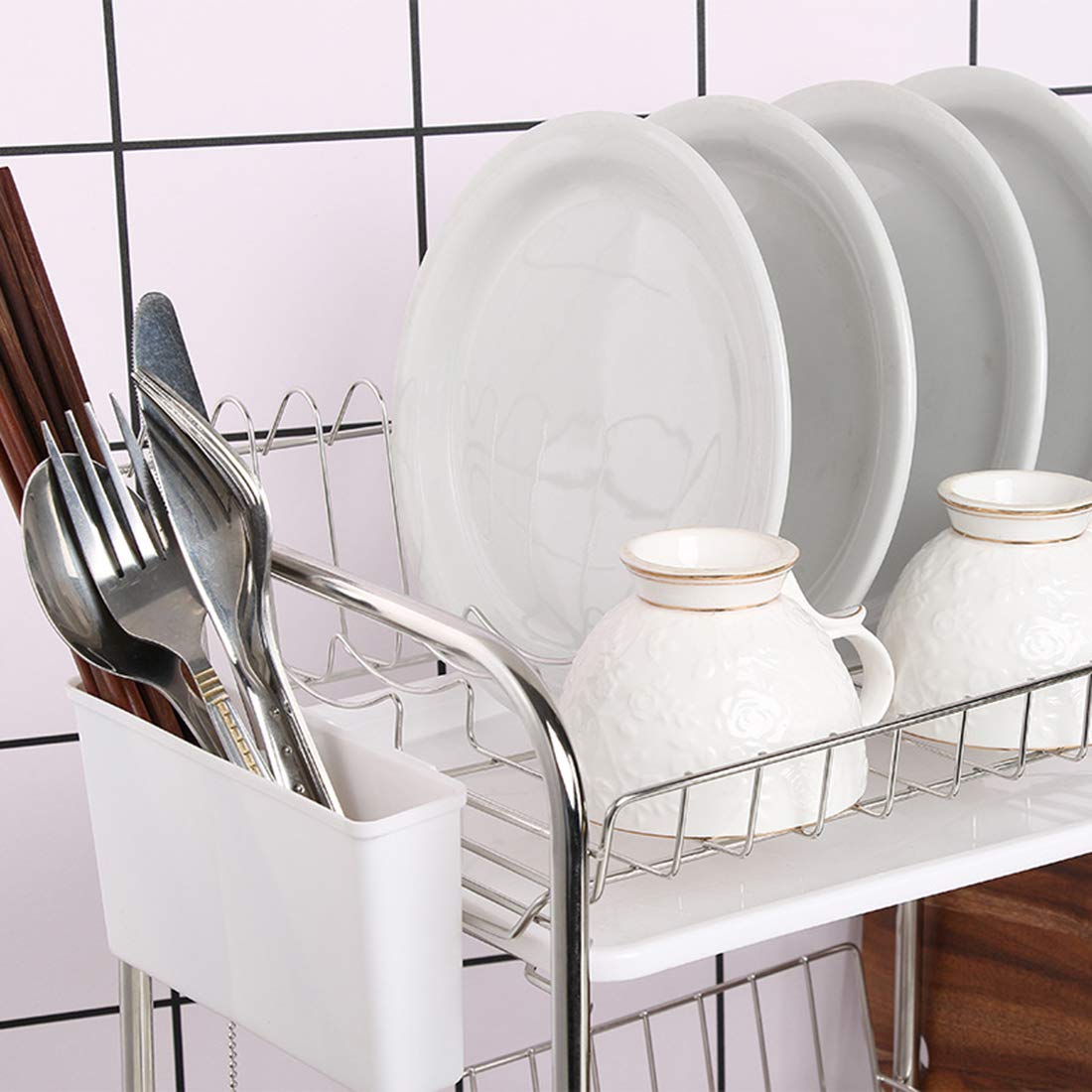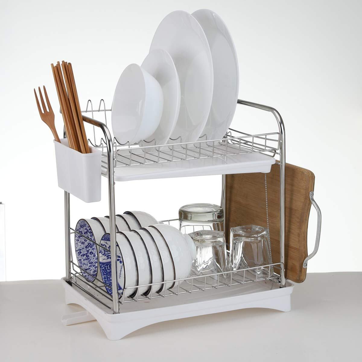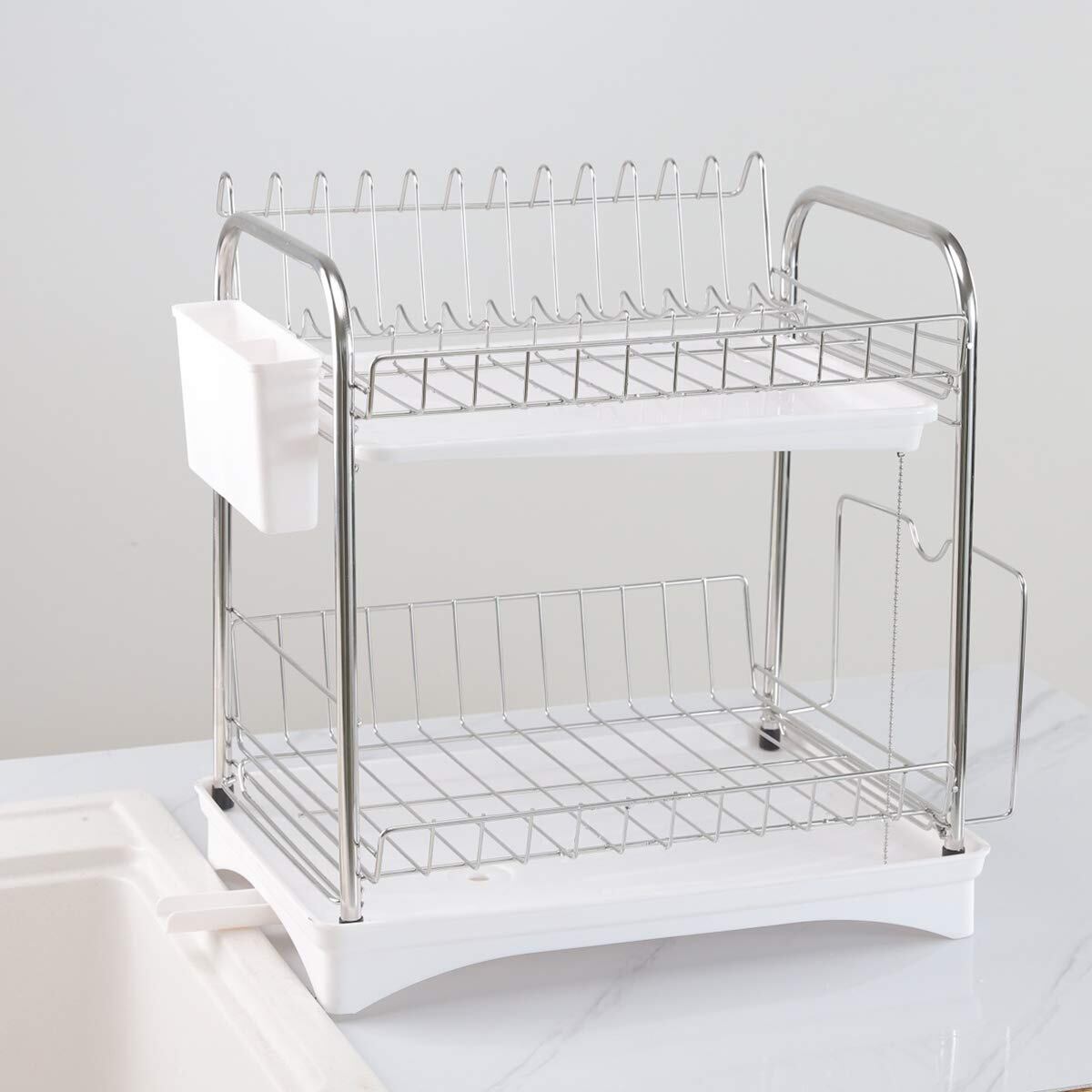 [leimish]水切りラック 2段水切りかご ステンレス製 バスケット錆びない 水が自動で流れる 乾燥 食器水切り 皿置き 箸立て 大容量 キッチン収納(ホワイト)