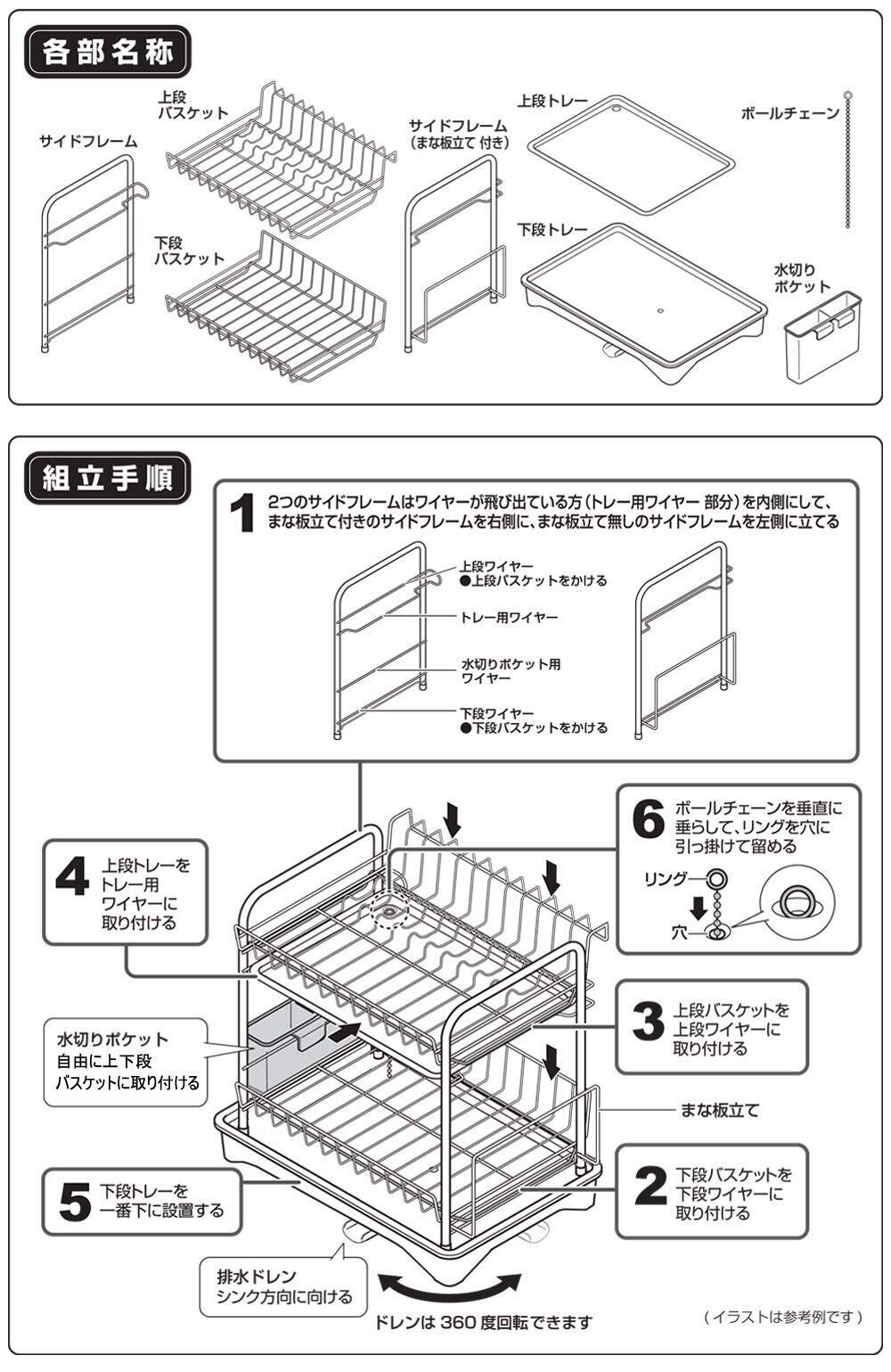 【セット内容・安心的な】セット内容:水切りかご、水受けトレイ、箸ホルダー、止水栓。