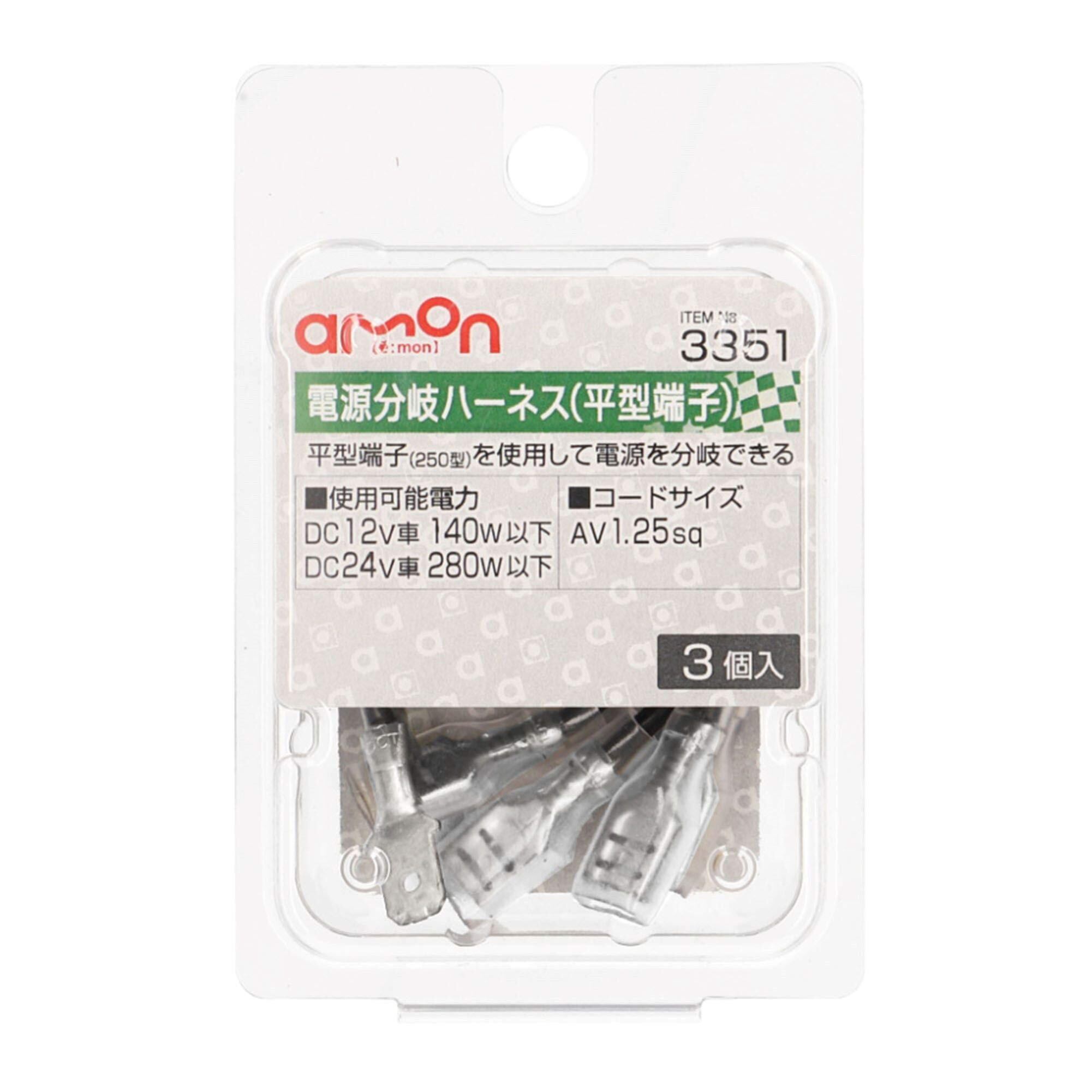 エーモン(amon) 電源分岐ハーネス(平型端子250型タイプ) AV1.25sq 3個入 Y型接続端子 3351