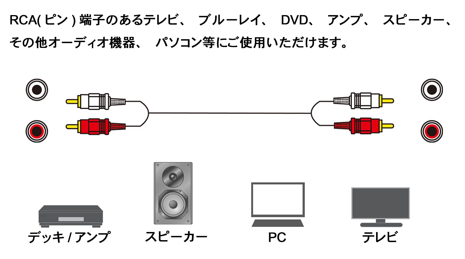 音声入出力端子がピン(RCA)端子のついた機器同士を接続します。