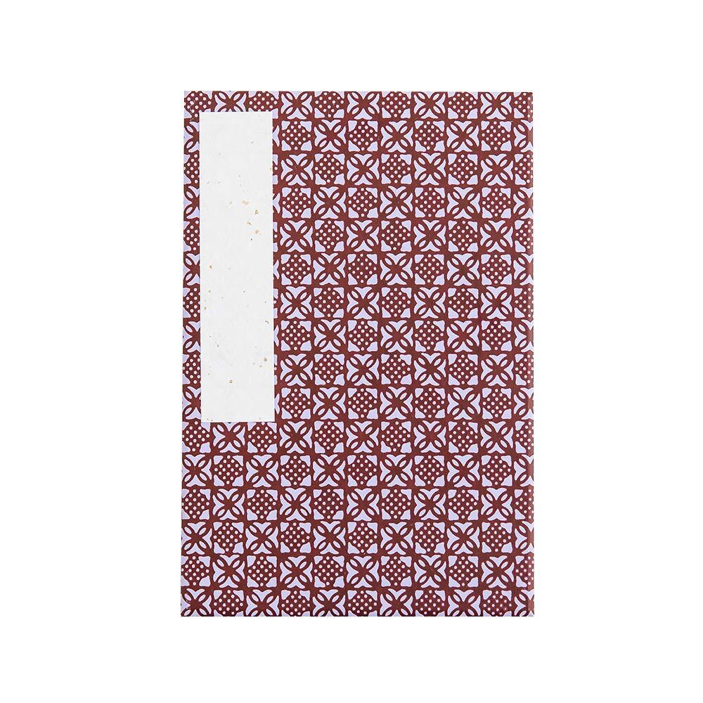 はいばら 御朱印帳 大判 和柄 蛇腹44ページ (江戸?大正期デザイン復刻) 捺染摺り千代紙 職人手づくり 日本橋榛原 (七宝 えんじ色)