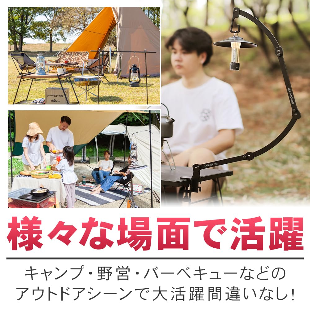 品ランタンスタンド吊り下げ調節可能ギア式クランプ挟むだけ工具不要折り畳み持ち運びキャンプ