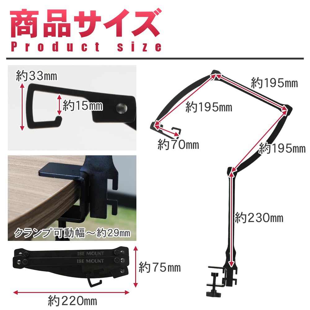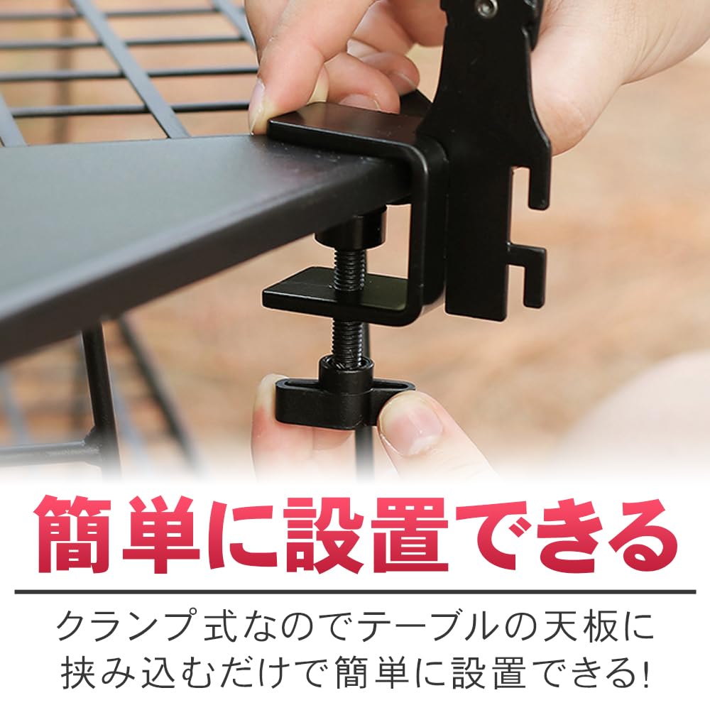 本体は耐久性に優れた素材を使用しているので、変形や劣化しにくく長い間ご愛用いただけます。テーブルの天板を挟むクランプタイプのため、工具不要で誰でも気軽に設置できるところがポイントです。※厚さ29mm以内の天板に対応しています。