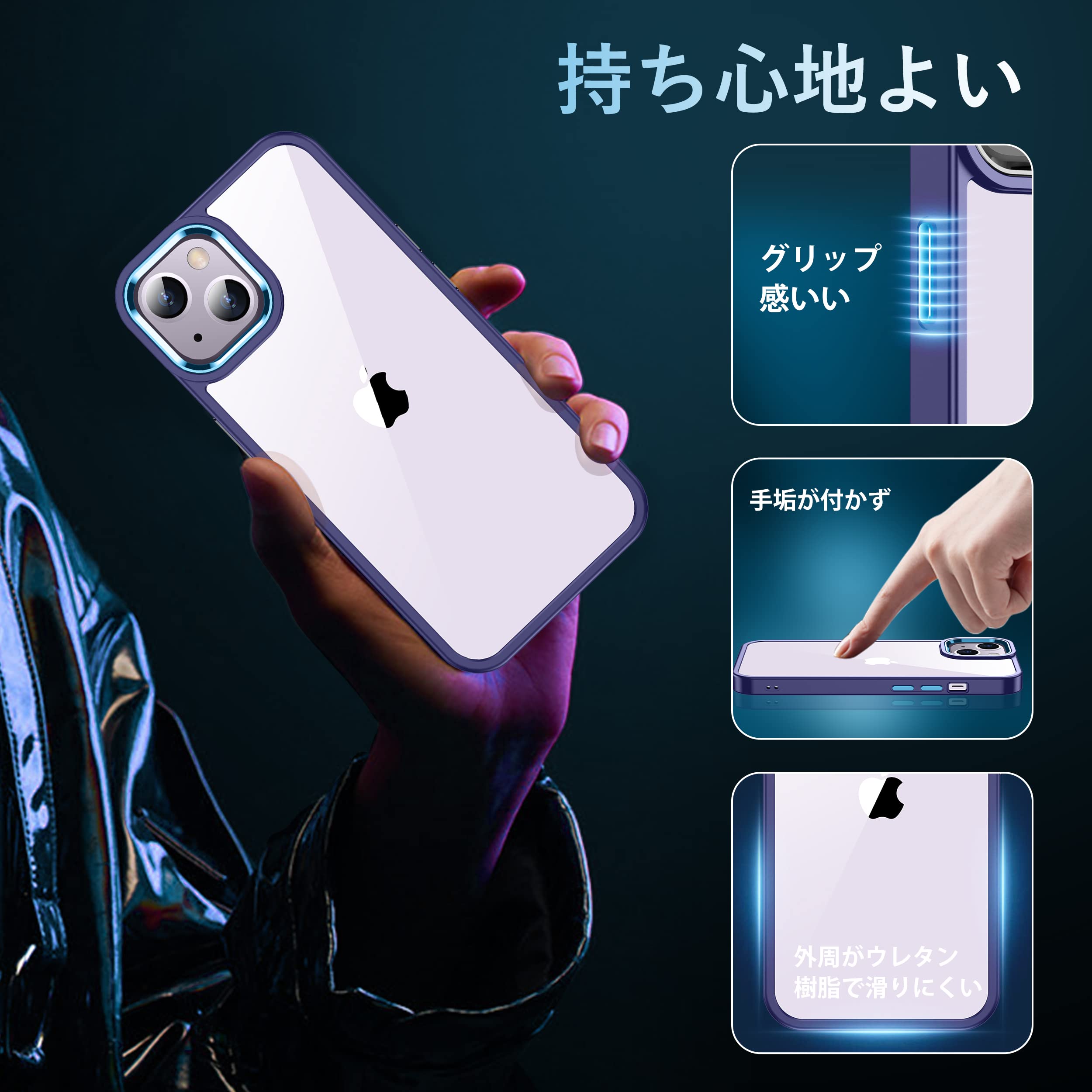 iPhone14 ケース パープル カメラレンズ保護付き 耐衝撃 黄ばみ防止 アイフォン14ケース 米軍MIL規格 耐久性 SGS認証 アイホン14 スマホケース ワイヤレス充電対応 あいふぉん14 カバー 6.1インチ