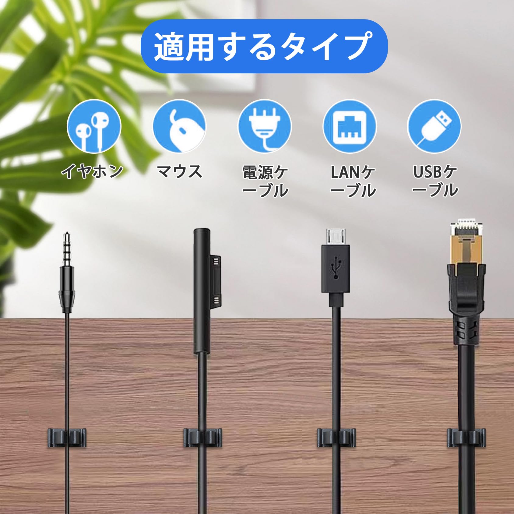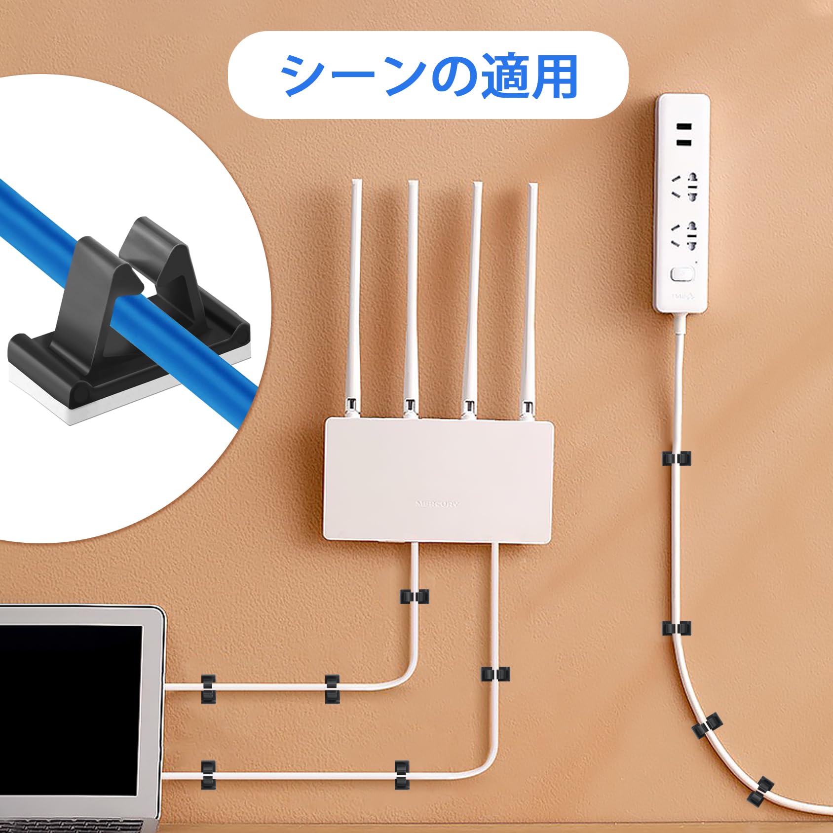 【すっきり】直径0.8cm以内、異なるのケーブルに適合、LANケーブル、電源コード、照明コード、携帯やスマホンの充電コード、PC周辺のコードなどのケーブル類がすっきり整理でき、居場所が明るくに綺麗な状態を保つのケーブルホルダーです。※使用前粘着したい位置の表面のホコリを清潔してから取り付けてください。取り付けた後、24時間ほど放置してから使用してください。