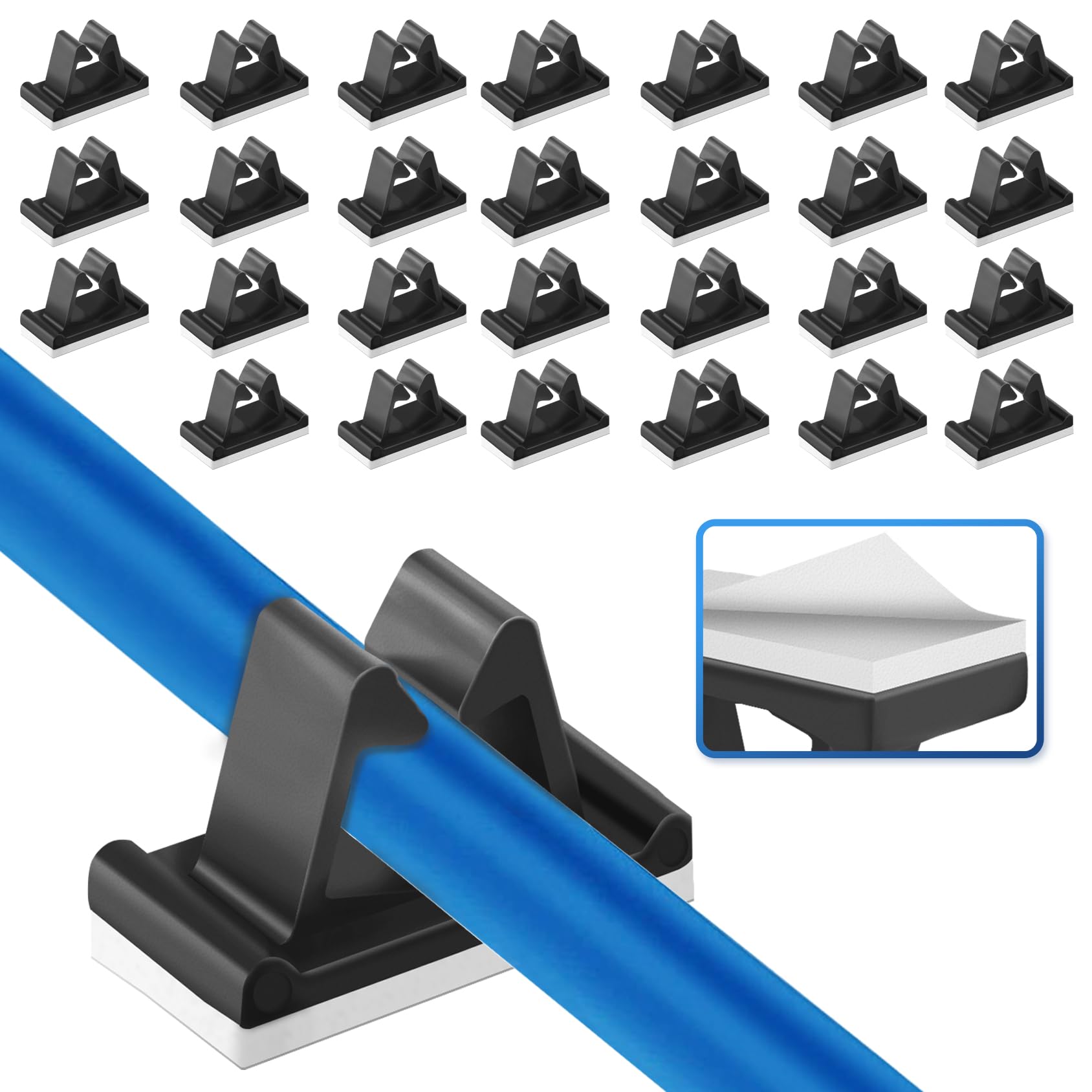 【人気】VIAKY ケーブルクリップ 50個入り 新型 オリジナル W型 コードホルダー コードフック 配線隠し コード 管理 ケーブルまとめる 粘着シート付 細いケーブル適 ケーブル固定具 ブラック | GIGATERA