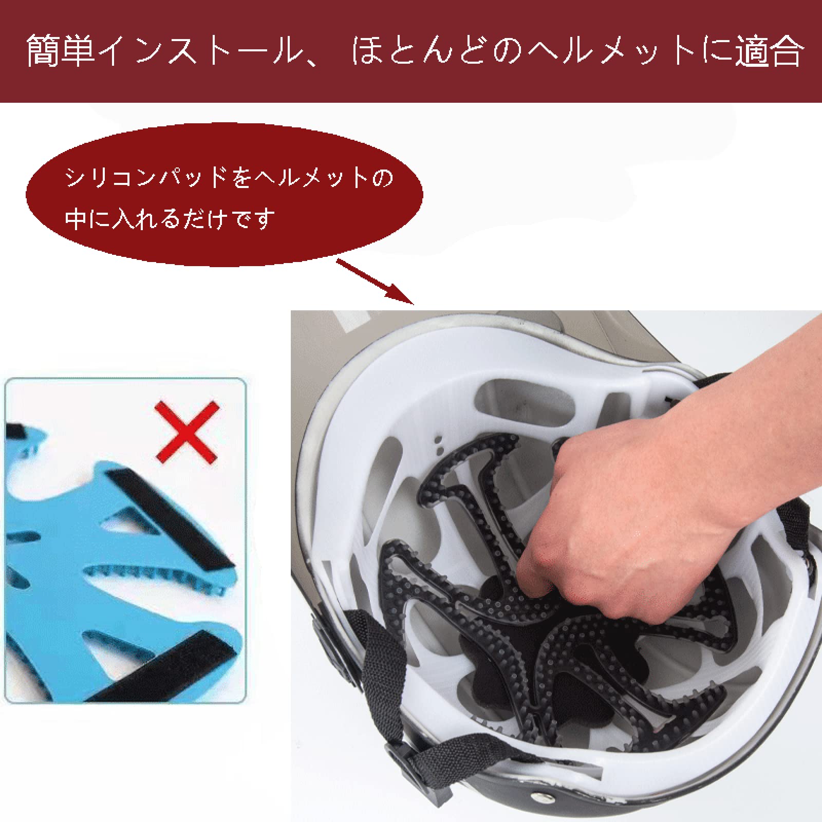 【健康と安全】ヘルメットパッドは高品質のシリコン素材で作られています、通気性シリカゲルには、乾燥、抗菌、脱臭効果があります、発汗によるバクテリアの繁殖を抑え、安心・安全です。