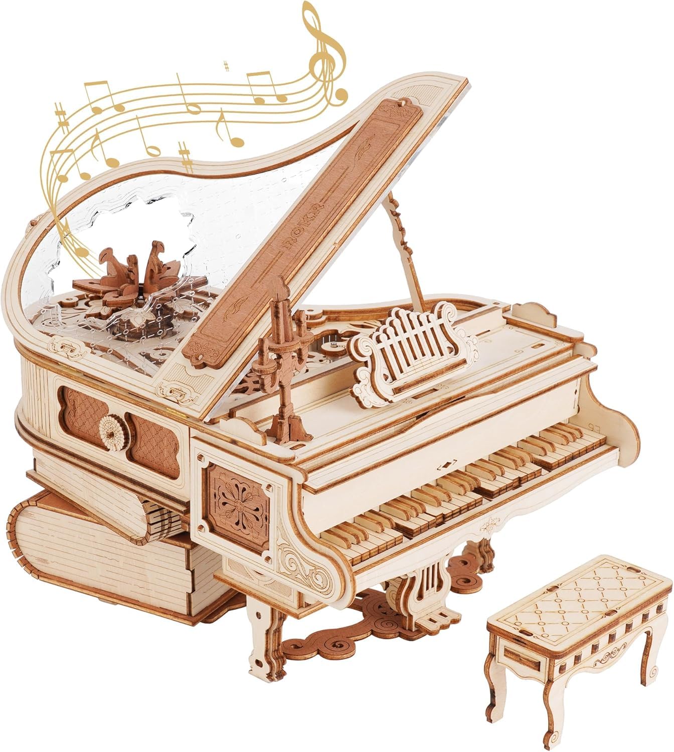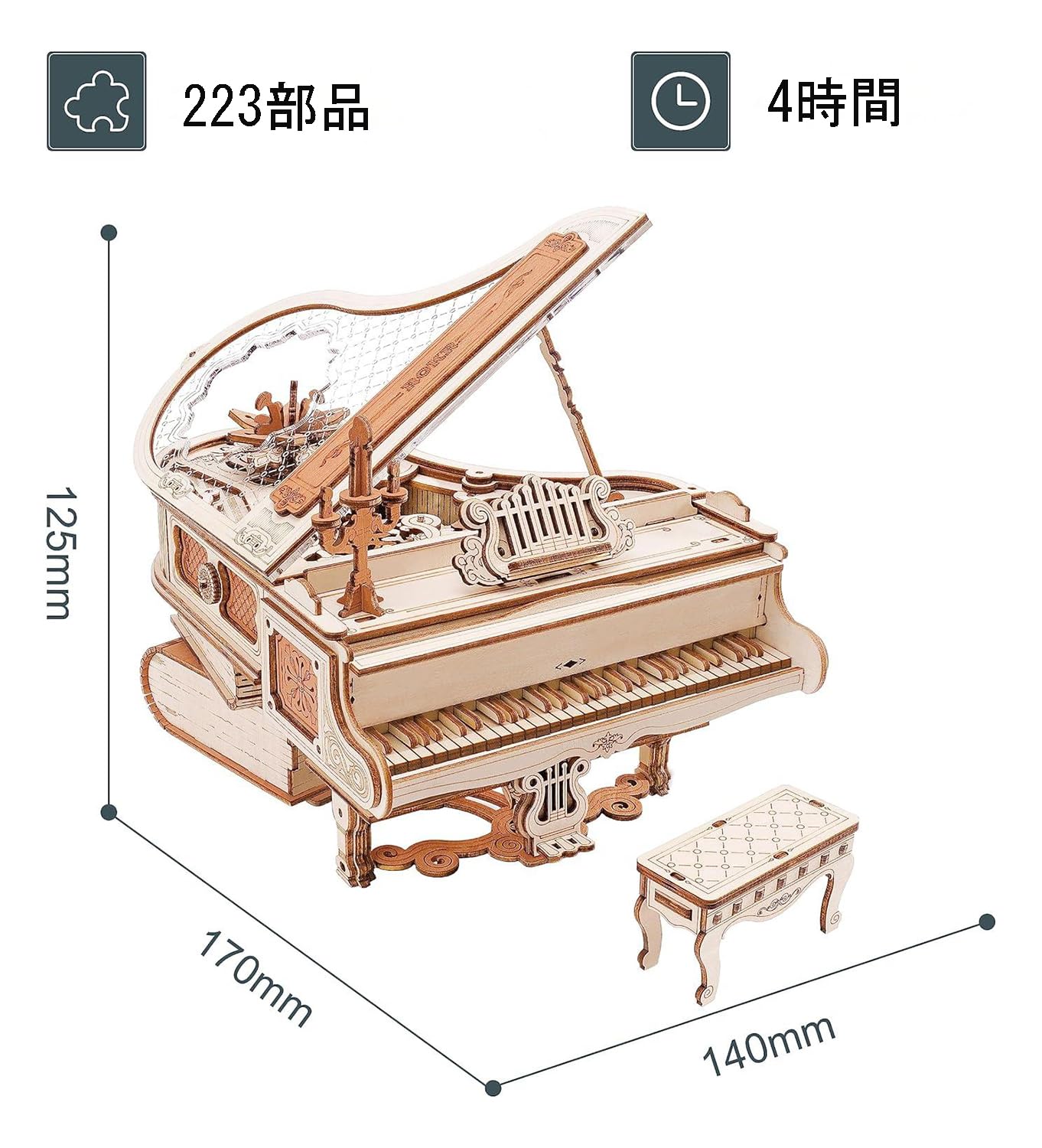 ROKR 立体パズル ピアノ メカニカル オルゴール 自動再生 電池不要 木製 3D ウッドパズル 工作キット DIY クラフト 組み立て モデル 可動式模型 楽器 暇つぶし 知育玩具 大人 女の子 男の子へのギフト フィギュア ディスプレイ