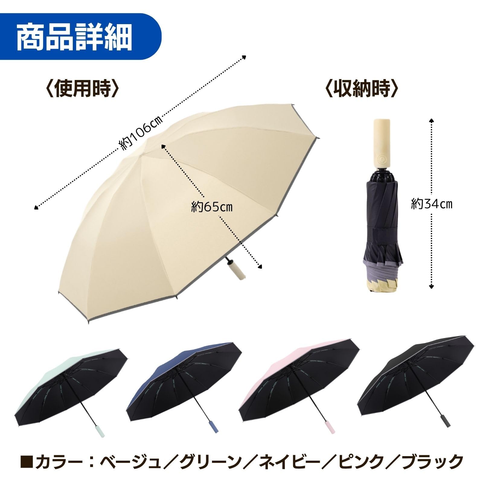 【ワンタッチ開閉!片手でらくらく操作】ボタンを押すだけで自動的に開閉できるワンタッチ式を採用。荷物で片手がふさがっていても、スムーズに傘を開閉できます。雨の日に車からの乗り降りや、子どもを抱えたままでもストレスを感じさせません。忙しい朝や通勤・通学の時間帯にも非常に便利。突然の豪雨でもサッと開けて濡れるのを防ぎ、スマートな日常をサポートします。