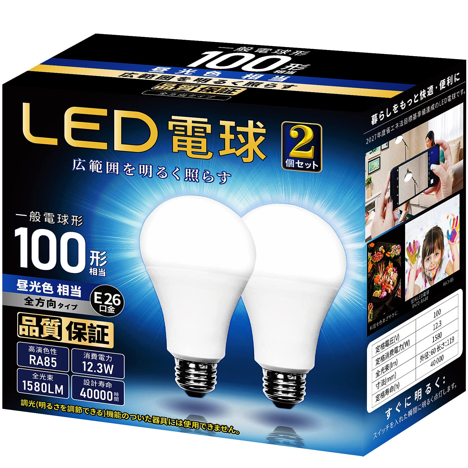 LED電球 E26口金 100W形相当 昼光色 1580LM 全方向タイプ 高輝度 一般電球形 断熱材施工器具対応 密閉器具対応 PSE認証 2個入 (昼光色)