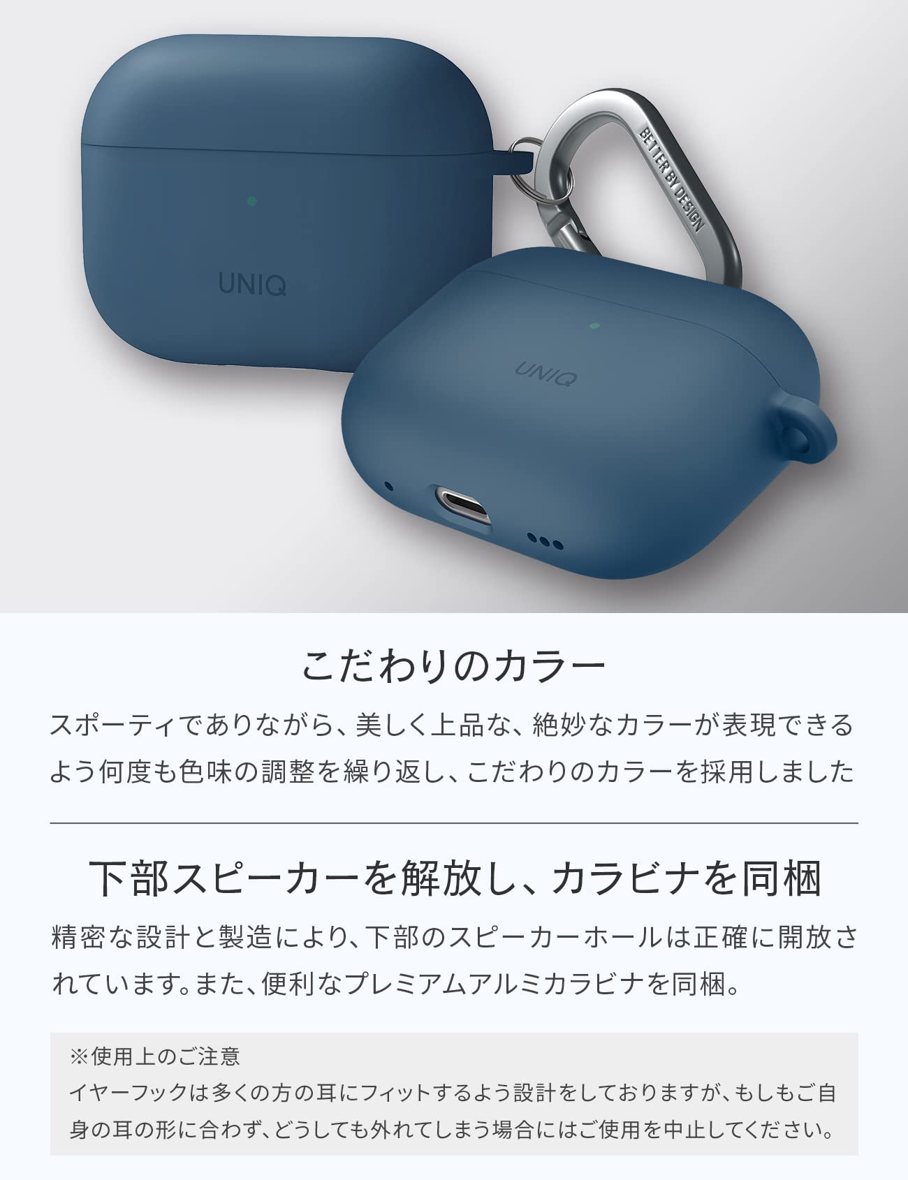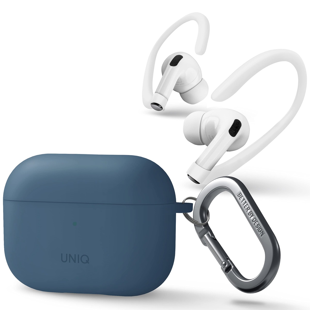 UNIQ AirPods Pro2 ケース AirPodsPro2に対応 ワイヤレス充電対応 衝撃 吸収 保護 LED可視 シリコンカバー カラビナ イヤーフック付属 NEXO (AirPodsPro2 (2022/2023), ブルー)