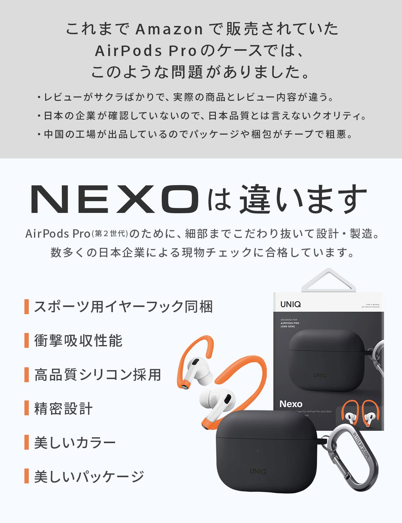 【対応機種】AirPodsPro( 第2世代 )に対応。AirPods Pro第二世代 Type-Cモデル対応(ただし、端末購入時に同梱の付属ケーブルには適合致しますが、それ以外のType-Cケーブルは差し込み口の設計寸法がそれぞれ異なるため、適合を致しません。)
