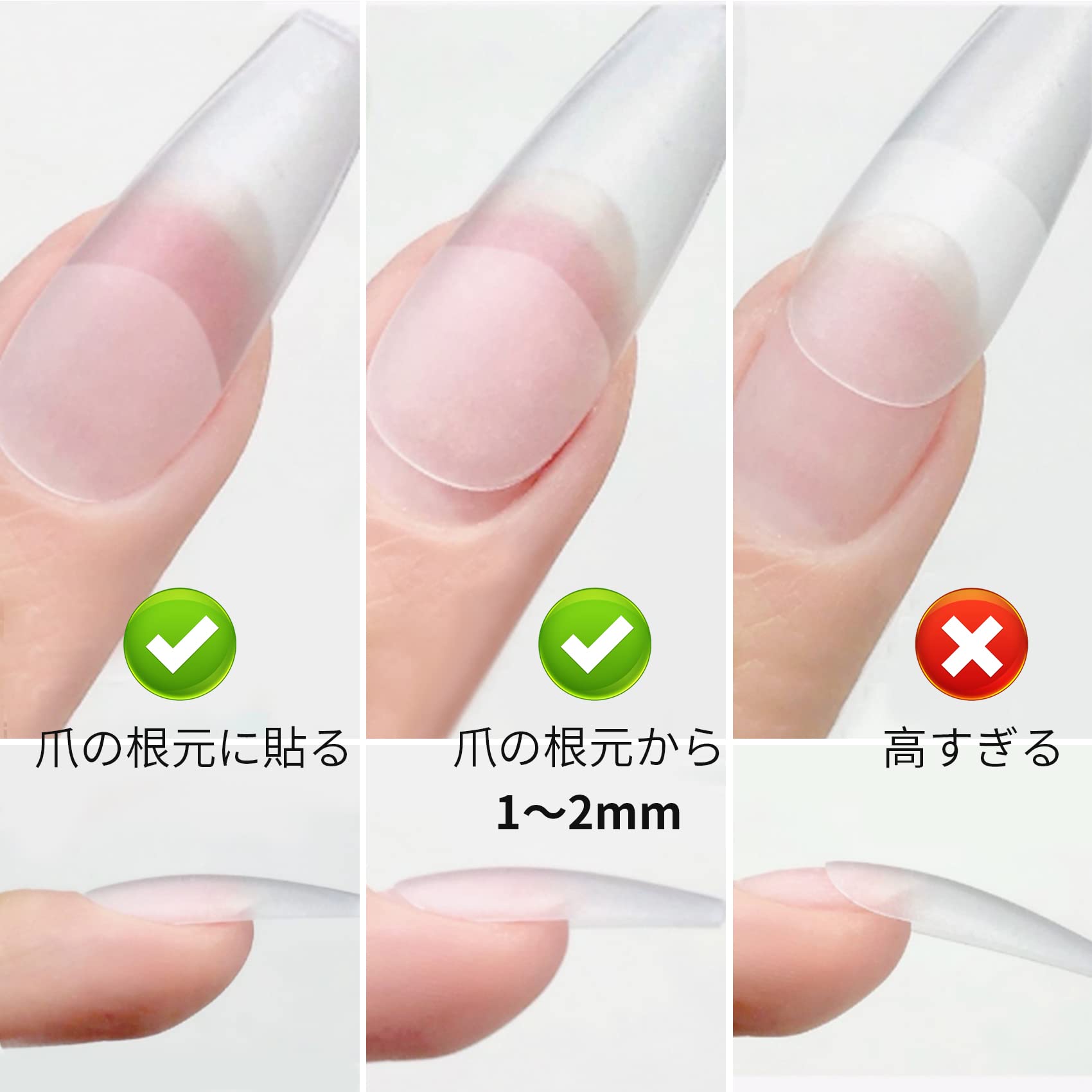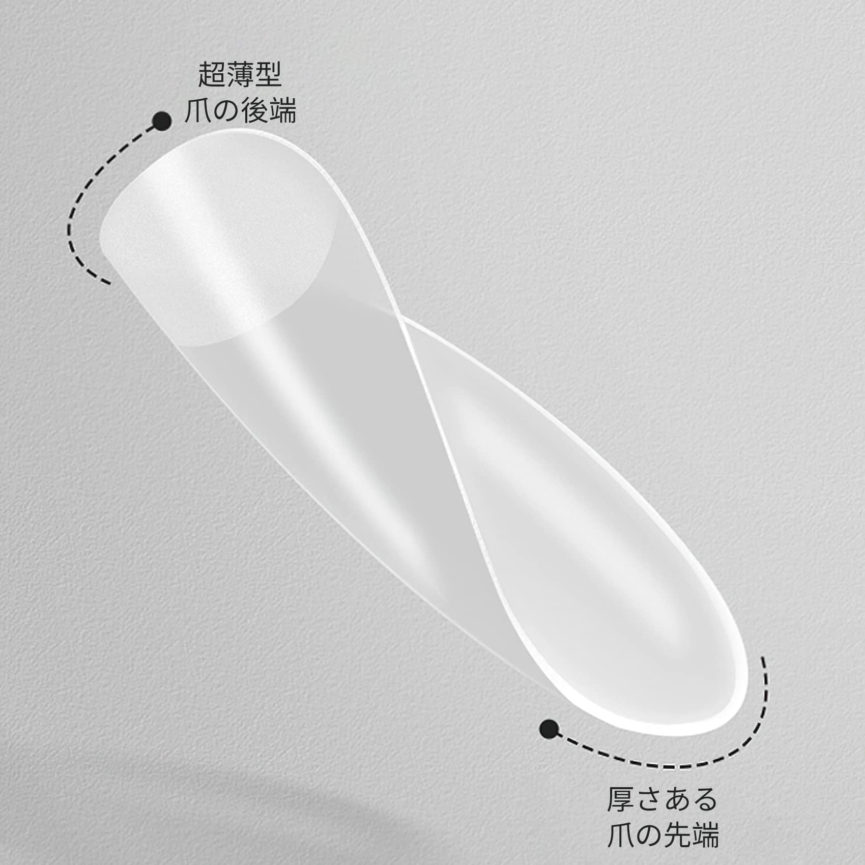 高品質:クリアネイルチップは耐衝撃性・靭性に優れるABS樹脂を採用し、柔軟性が高く、折り目がありません。チップが薄いので付け心地も抜群、軽くて薄くて後端部分、ナチュラルなラジアンでグルー漏れにくいです。