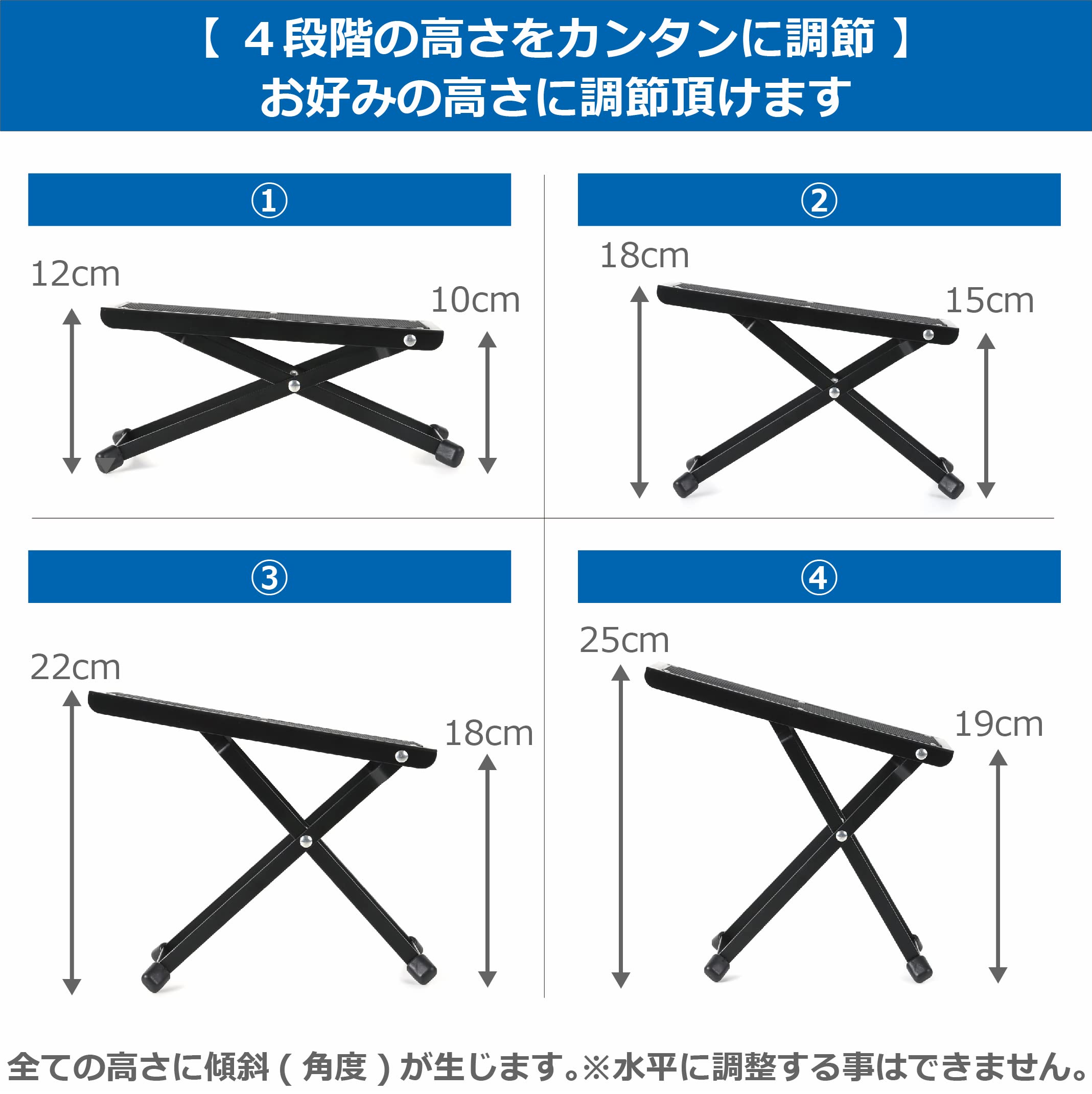 【製品サイズ・仕様】折りたたみ時のサイズ:長辺29.6cm ×短編11.8cm×厚さ20mm 使用時高さ:10cm?25cm程度に調節可能 重量:520g(グラム)
