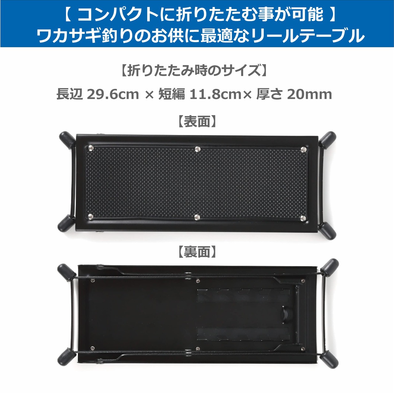 【材質】スチール(本体部)・ラバーゴム(脚部分) どんな電動リールにもご使用頂ける、ワカサギ釣りのお供に便利なたたき台、リールテーブルです。