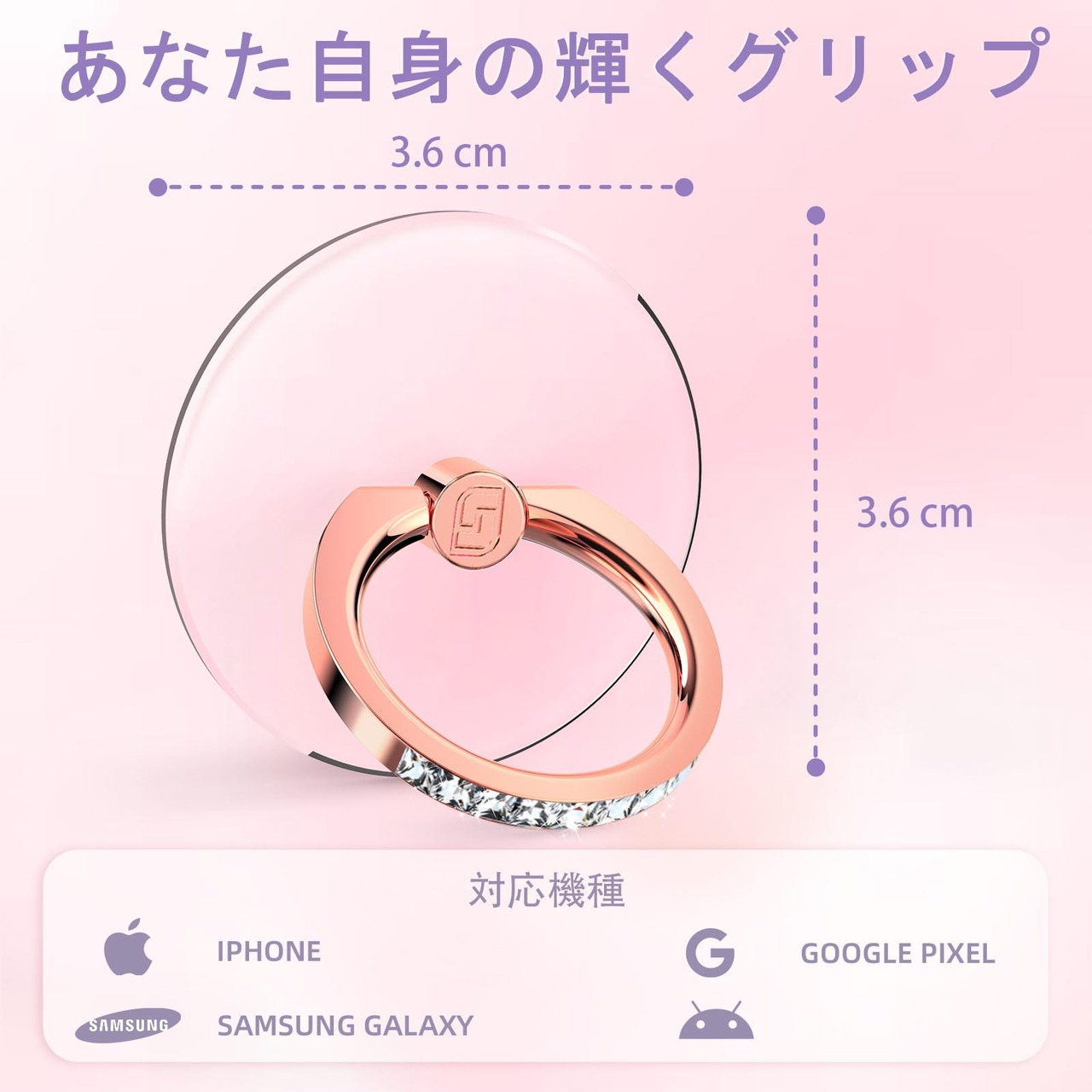 【セール】透明 スマホリング 2 個セット Jsoerpay ダイヤモンド 360°回転 バンカーリング 落下防止 指輪型 スタンド機能 ほとんどのスマホ タブレット ケースと互換性あり(ローズゴールド) | GIGATERA
