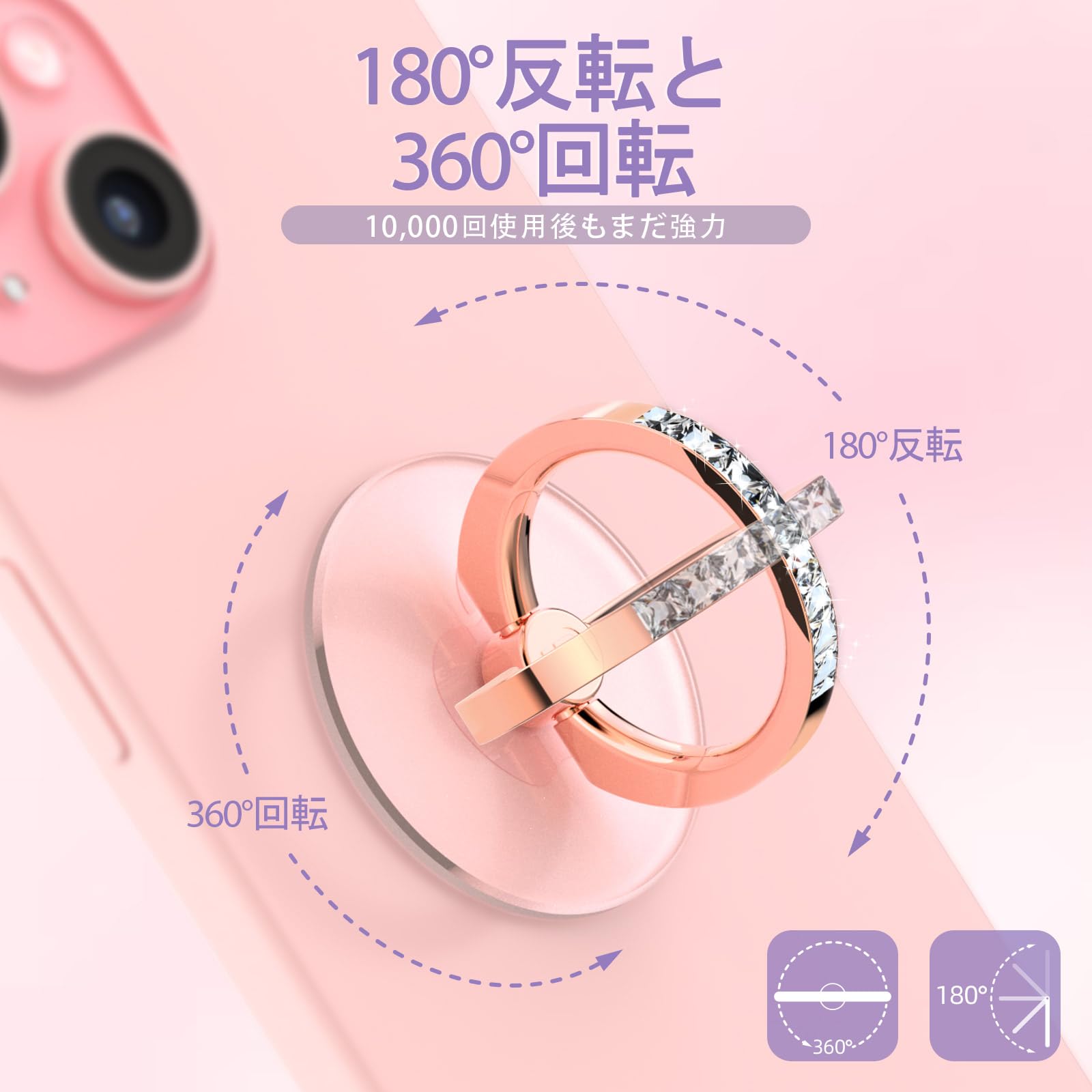 キラキラ光るスマホリング:キラキラ輝くラインストーンのスマホリングは、どんなスマホにもマッチし、より美しい外観を実現します。また、家族、友人、同僚、特別な日、クリスマスの贈り物にも最適です。